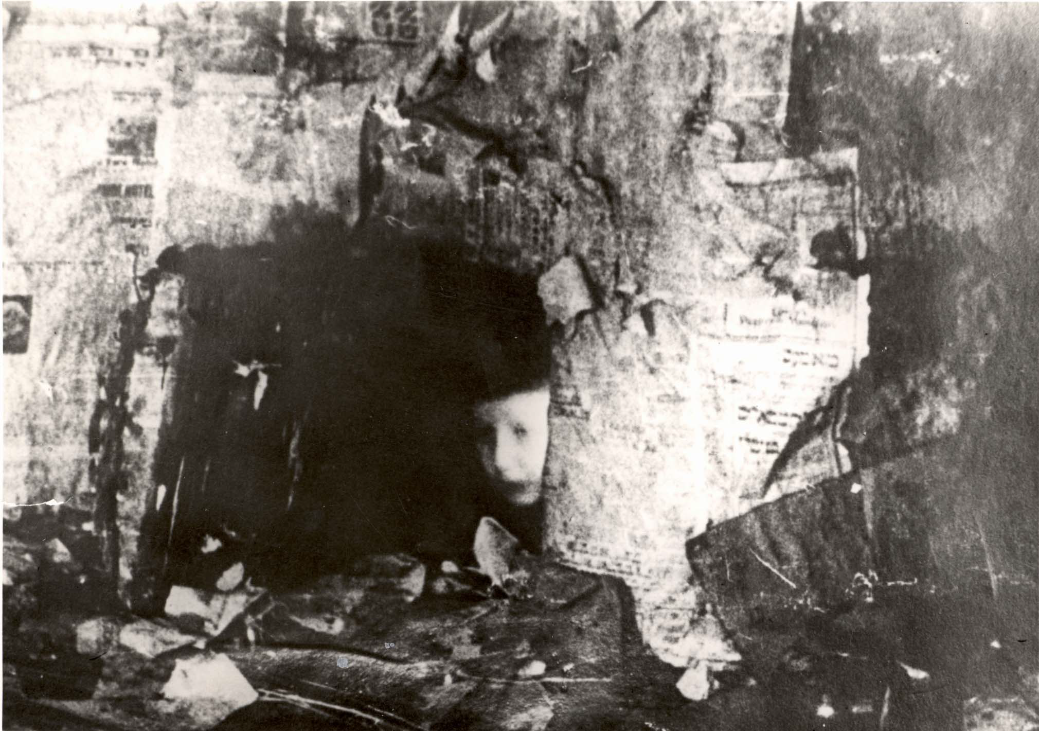 « Nous avons vécu ainsi, en nous cachant, jusqu’au 19 avril 1943, la veille de la Pâque juive, ou Erev Pessaẖ, et le premier jour du soulèvement du ghetto de Varsovie. Ce jour-là, une alerte a été lancée. Quelques appartements dans l’enceinte, notamment ceux des médecins et d’autres personnes jugées importantes, étaient encore équipés de téléphones en état de fonctionnement, si bien que la résistance clandestine polonaise résistance juive, à l’extérieur, en lien avec la résistance juive, a pu nous avertir que les nazis s’apprêtaient à déporter tout le monde. À cette époque, il y avait déjà de nombreux bunkers dans le ghetto. Nous en avions aménagé un sous les ruines amoncelées devant notre bâtiment. Le concierge et les hommes de notre immeuble, y compris mon père, l’avaient creusé, créant une entrée au centre, encadrée de deux pièces. Ils ne voulaient pas abandonner et être capturés par les Allemands. Ils y avaient donc stocké des vivres et installé l’eau et l’électricité ainsi que des bouches d’aération, de telle façon que personne ne pouvait rien détecter de l’extérieur. Mon père et ma mère nous avaient préparés, ma sœur et moi, au moment où nous devrions y aller. Ils nous ont dit que, lorsque le temps serait venu d’entrer dans le bunker, il ne faudrait pas poser de questions et agir au plus vite. » - Pinchas Gutter, Dans la chambre noire