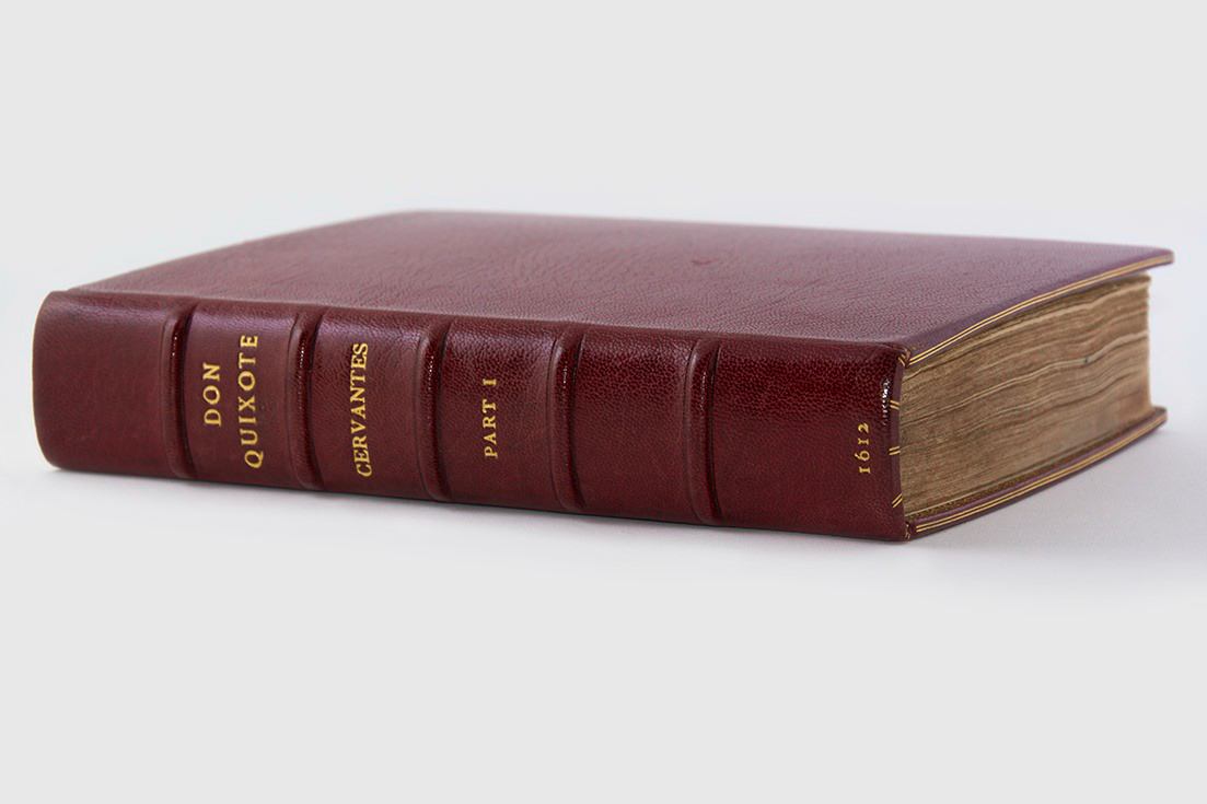 Edición encuadernada en pergamino de la primera parte de la edición príncipe. Fue publicada en Valencia a principios de 1605 y es el ejemplar más antiguo en la colección.