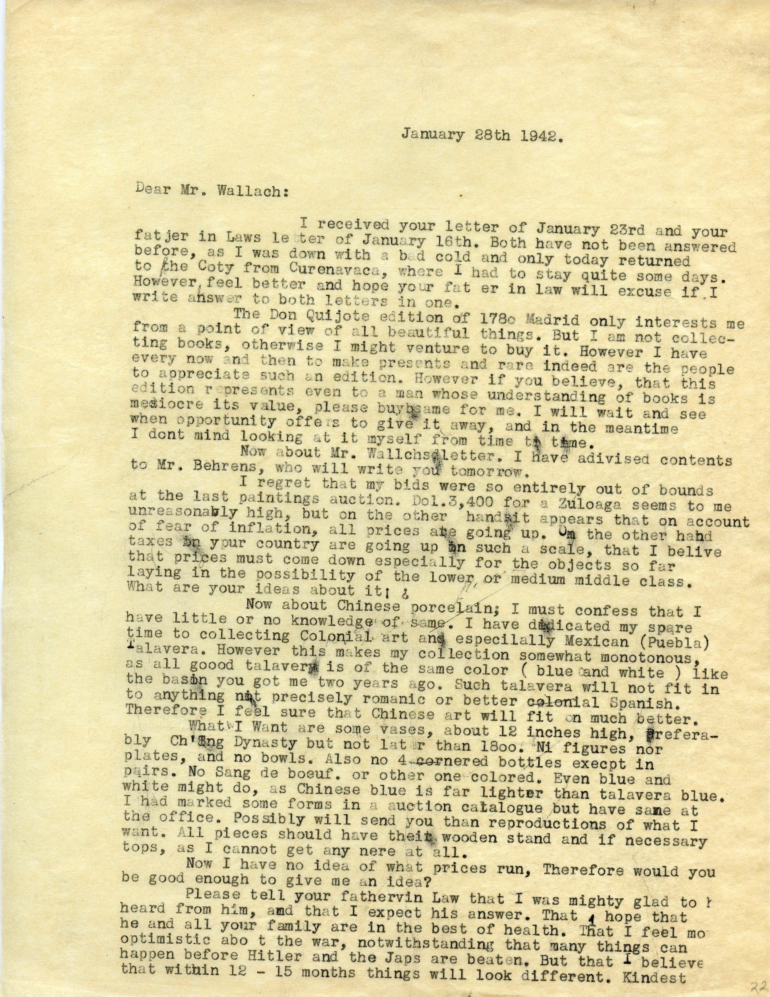 El ejemplar fue adquirido por Mayer Traumann en 1942. En una carta del 28 de enero, Mayer le comenta a Hellmut Wallach, uno de sus más cercanos marchantes de arte, que la edición le interesa “desde un punto de vista de las cosas hermosas”. Señala también que le gustaría adquirirlo si él considera que “esa edición es de valor incluso para un hombre cuyo conocimiento sobre libros es mediocre”.
