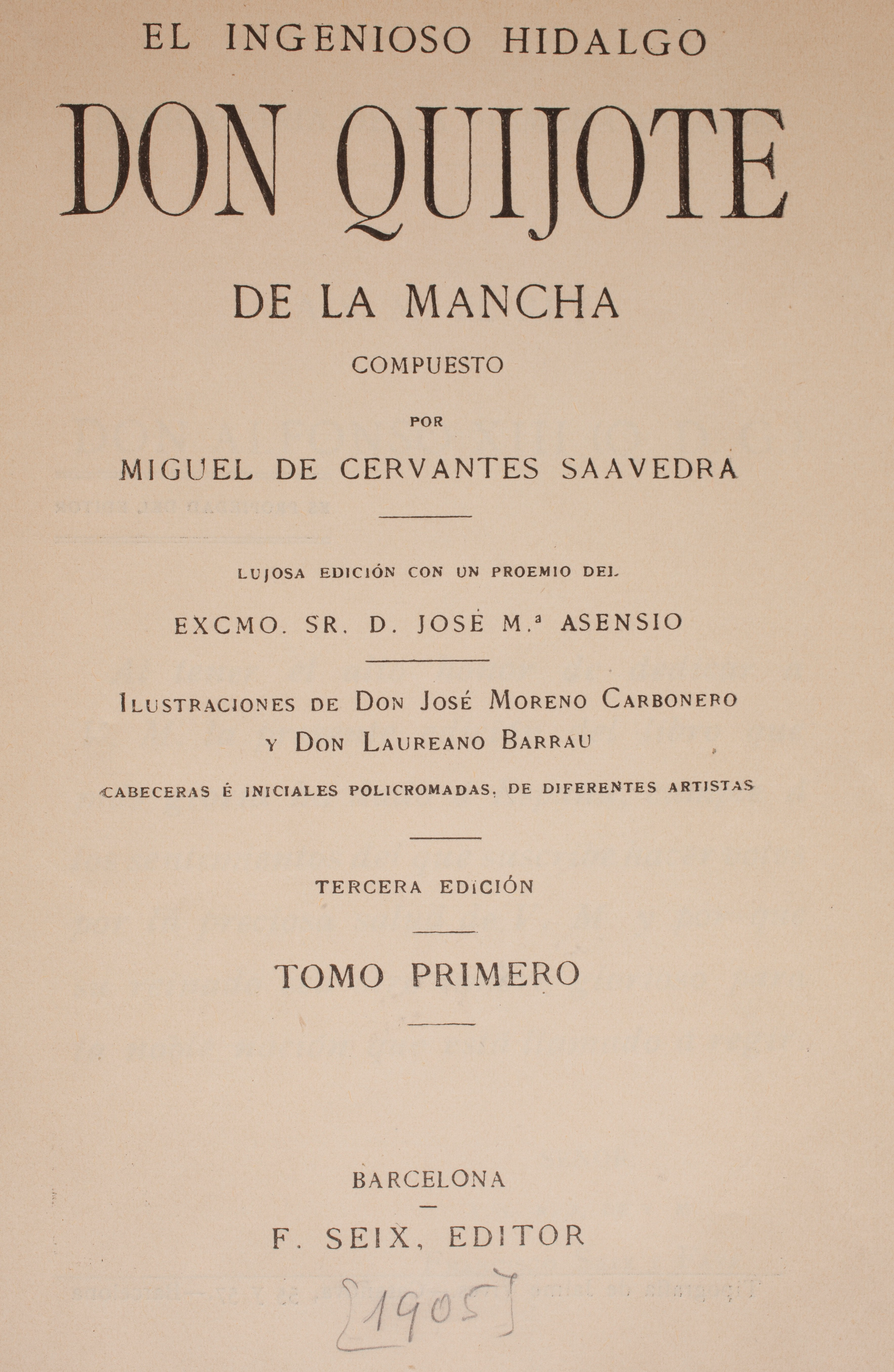 En este ejemplar se cambio el título de la edición original por el de “Vida y Hechos del Ingenioso Cavallero Don Quixote...”, generalizado en la mayor parte de las ediciones posteriores.