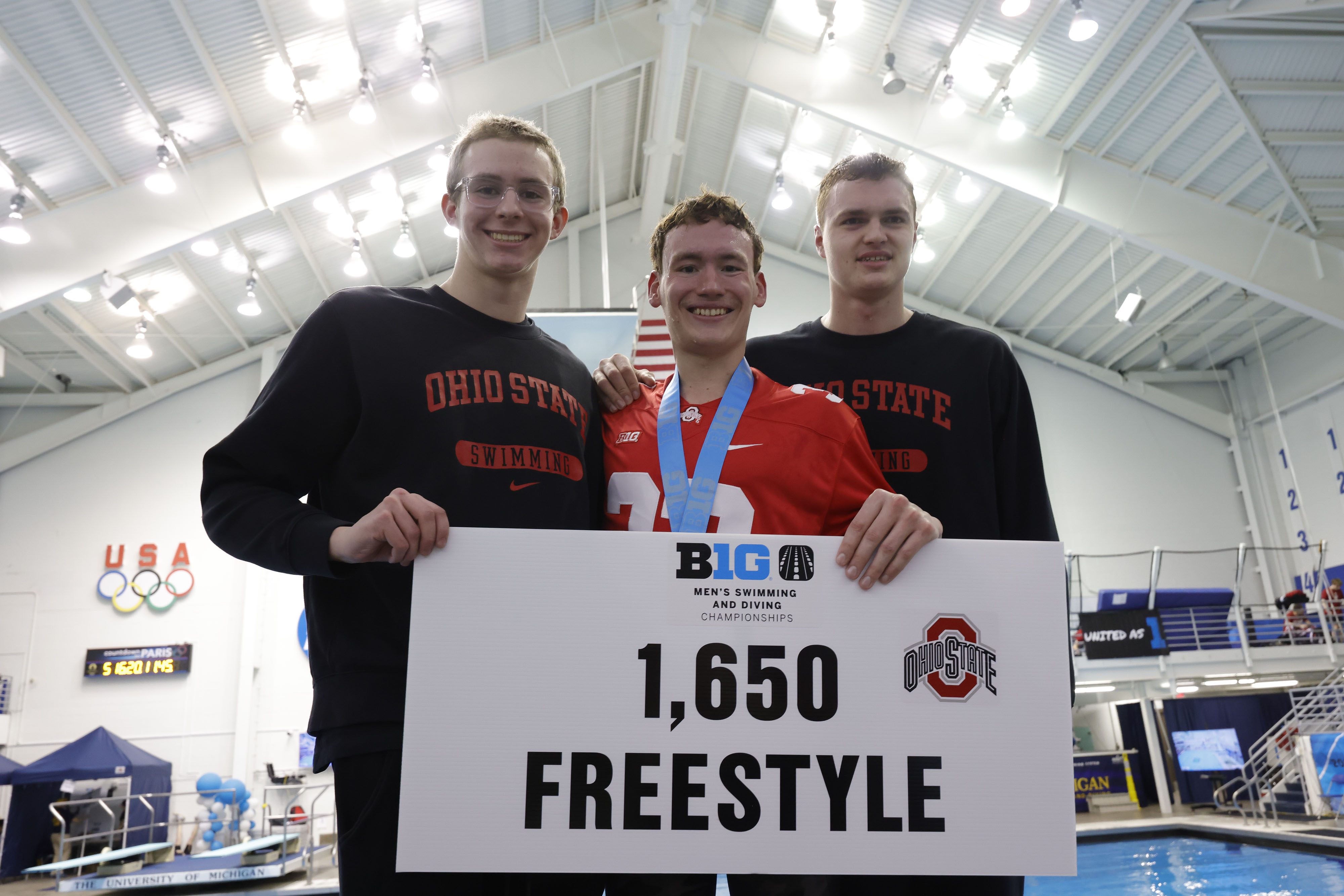 Although the No. 14 women fell to the No. 4 Wolverines, Mila Nikanorov turned in one of the most exciting performances in Buckeye history. Nikanorov swam a program-record time of 9:22.37 in the 1000 free. The time is also a Big Ten record, and she is now the ninth-best all-time performer in the 1000 free, joining powerhouse top-10 performers such as Katie Ledecky and Katie Grimes.