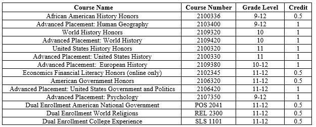 Students will learn about the major events that contributed to the development of the United States. Students will examine the social, political, economic and sociocultural factors that shaped the nation. Students will also examine the social and political movements that influenced and improved the American society.