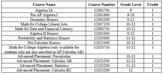 This Pathway includes a rigorous series of required and elective courses that best prepare students seeking admission to competitive four-year universities both in and out of state. Options include college-level courses, such as Advanced Placement courses, dual enrollment courses and courses offered in International Baccalaureate and Cambridge Advanced International Certificate of Education programs.
