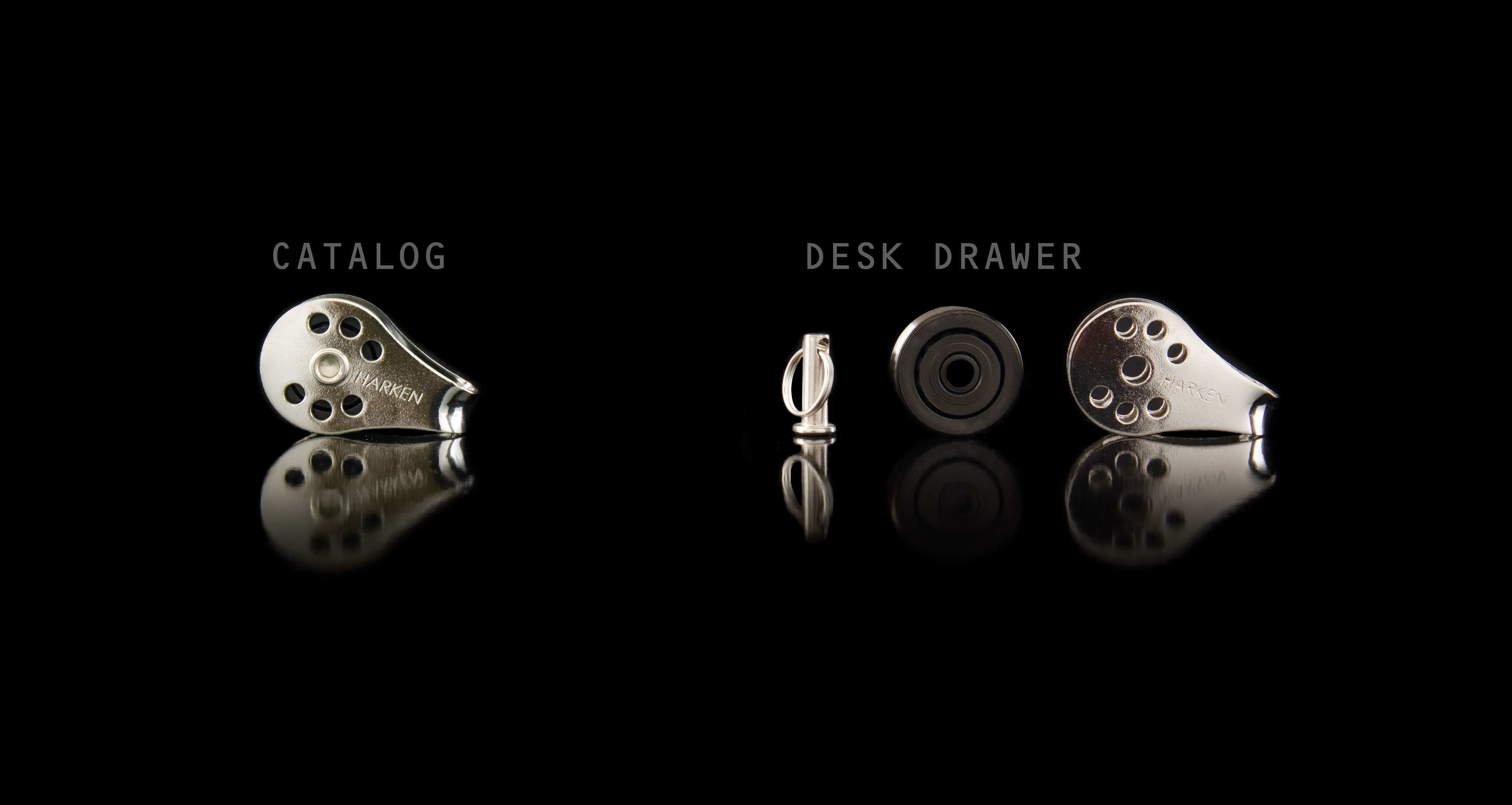 Les navigateurs et les navigatrices ont l’esprit créatif. Nous recevons des TAS de suggestions concernant les produits que nous devrions concevoir, adapter ou commercialiser. « Cette poulie est super, mais si vous pouviez simplement remplacer le rivet central par un axe de chape, je pourrais gréer plus vite. » Nous écoutons. Et au fil des années, nous en avons fabriqué beaucoup. Nous avons commencé à les rassembler dans une collection que nous avons appelée « Peter’s Desk Drawer » (le tiroir du bureau de Peter).
