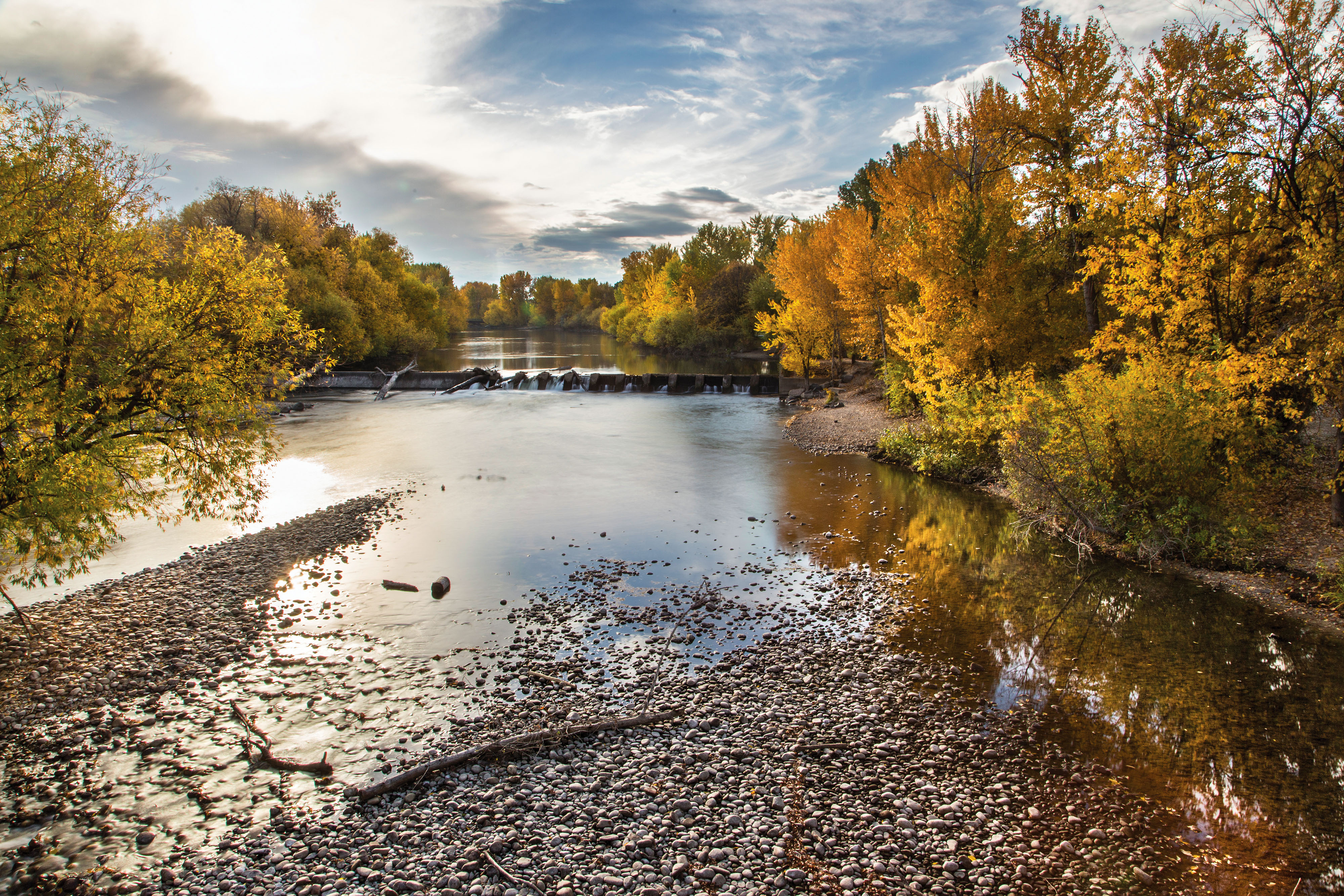 Created with images by knowlesgallery - "Autumn trees and the skyline of Boise Idaho" • Valerie - "Boise river lined with colorful trees in the fall" • vishnena - "Stars of the fireworks are on a dark blue background"