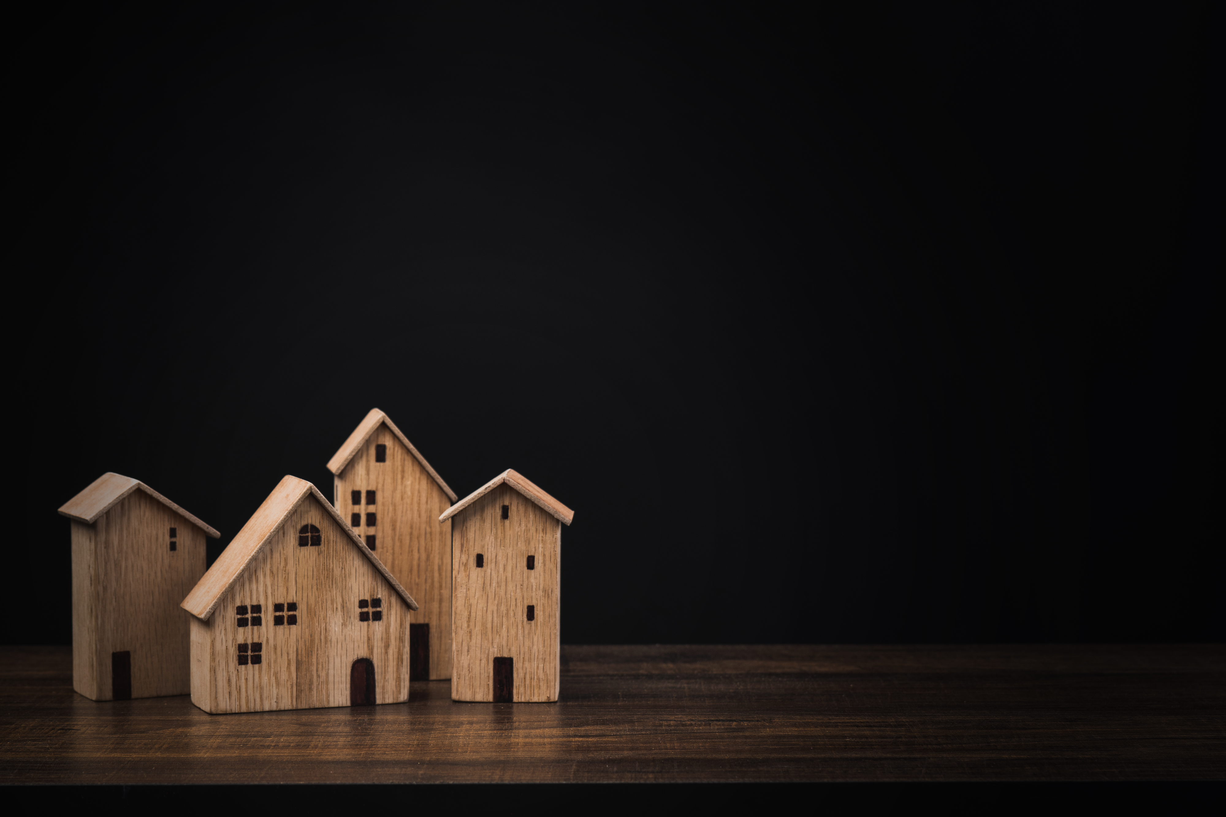 Created with images by ungvar - "Aerial roofs of the houses in the urban landscape of a small sleeping area Cleveland Ohio US" • Andy Dean - "Beautiful Custom Built Home Facade and Yard." • Jason - "White fence on corner home with other houses" • RG - "Row of houses in a suburb Wilsonville Oregon." • Andy Dean - "Beautiful Custom Built Home Facade and Yard." • khwanchai - "real estate concept, small wooden house or home on table with black background" • sommart - "House model on wood table. Real estate agent offer house, property insurance and security, affordable housing concepts"