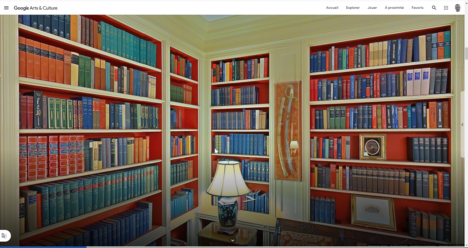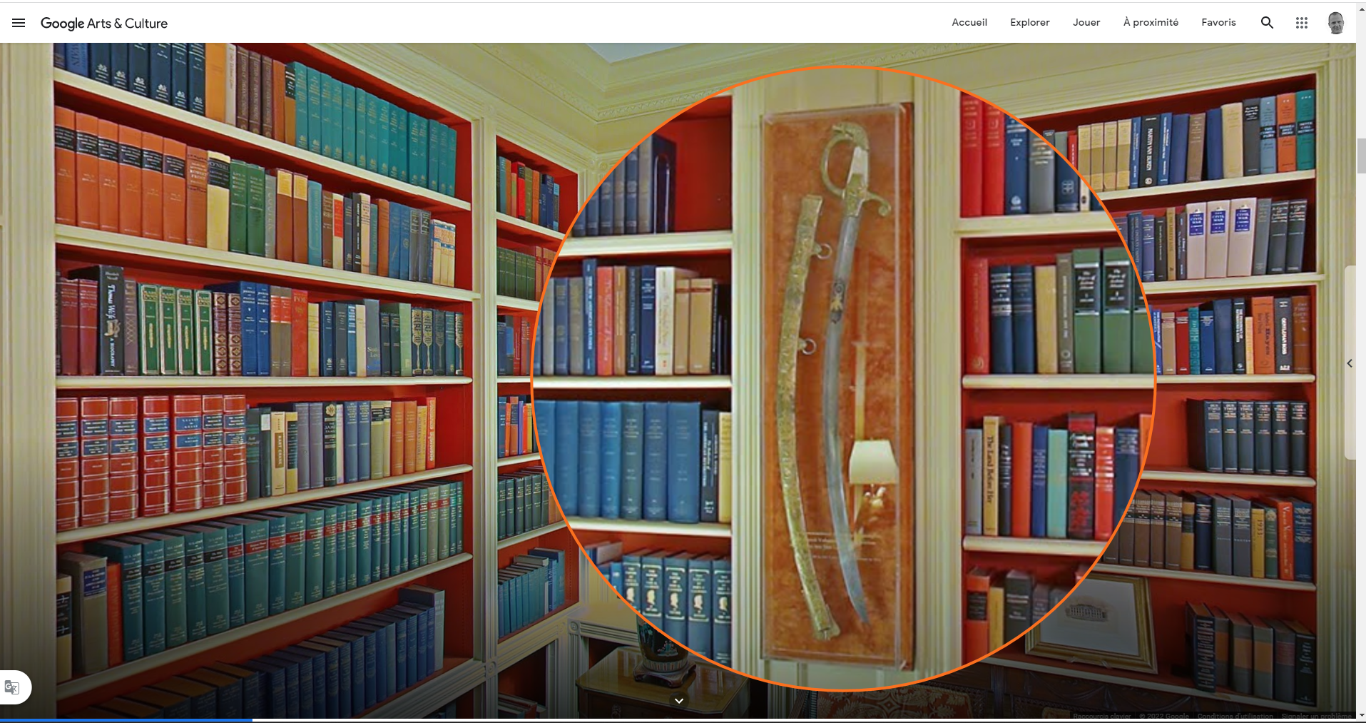"Et nous avons retrouvé le sabre, lors d'une visite virtuelle, dans la bibliothèque au rez-de-chaussée de la Maison Blanche ; un lieu de prédilection pour les tournages médiatiques"