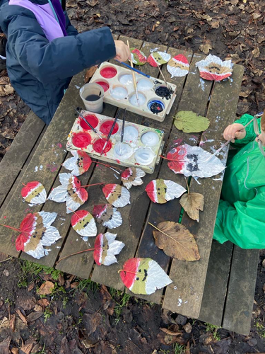 In art the children have explored how to make thick and thin paint marks on a range of surfaces. They have used primary colours and the dip, dip dab method of painting.