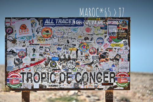 Le but du jour, après le tropique du cancer est de tenter le point de confluence 23° N 16° W, situé au Sahara occidental et non encore atteint. Sur les 21 possibles il n’y que celui où nous sommes passés le 7 février qui a été référencé avec succès. Hélas, hélas, après le phare Huit et la dune blanche d’hier, c’est encore un échec. Arrêtés à 7 km du point, par la piste devenue vraiment trop ensablée, sans grande possibilité de dépannage rapide et peut-être aussi quelques mines oubliées… sans 4x4 il faut savoir être raisonnable.
