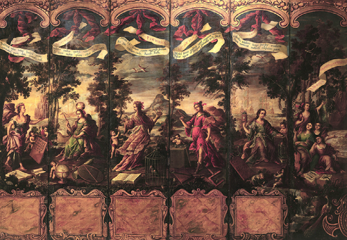 Este biombo perteneció al agustino Payo Enríquez de Rivera (Sevilla, España, 1622–Amavida, España 1684), arzobispo de la Ciudad de México (1668-1681) y virrey de la Nueva España (1673–1680). Su interés por la literatura clásica, las artes, la filosofía y la teología motivaron la creación del proyecto iconográfico de esta obra, la cual aborda el binomio naturaleza/arte.