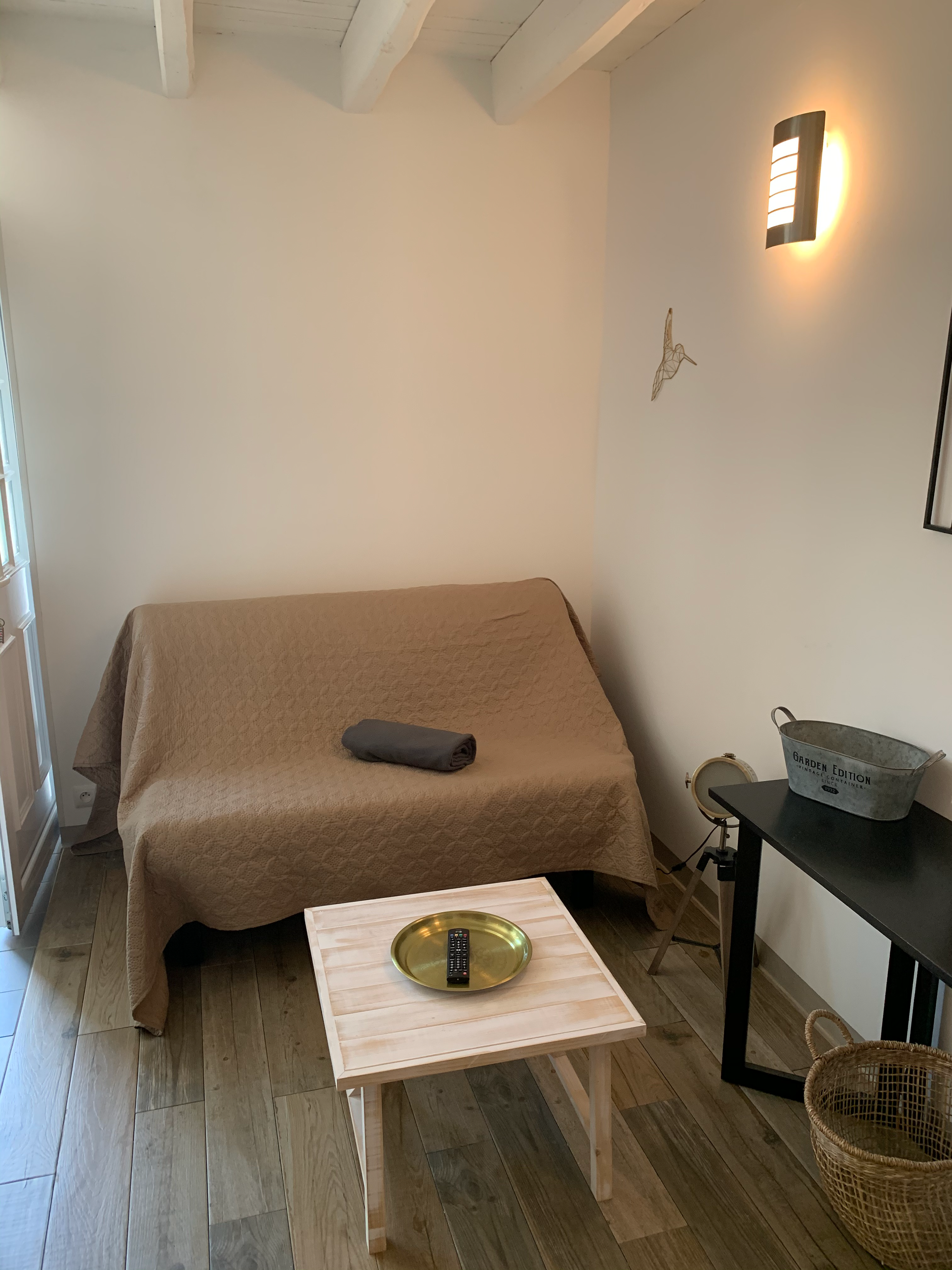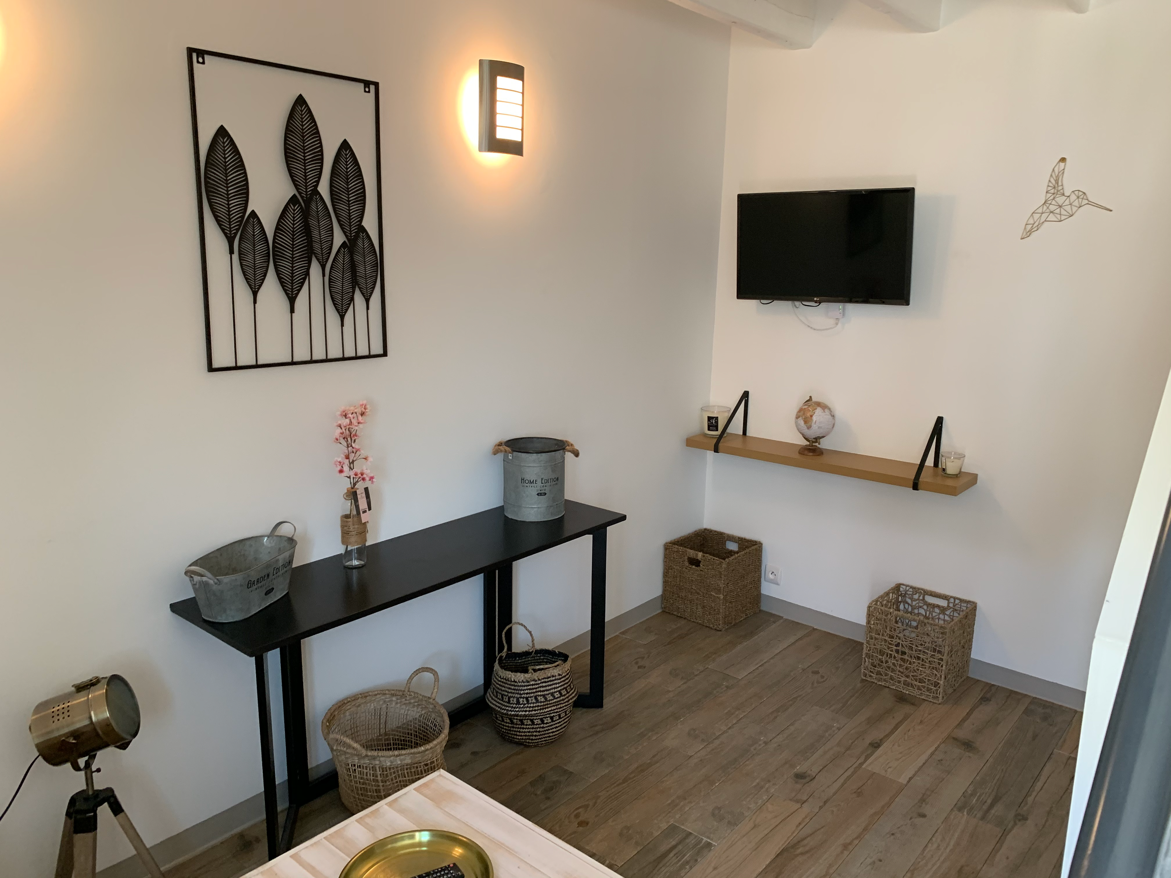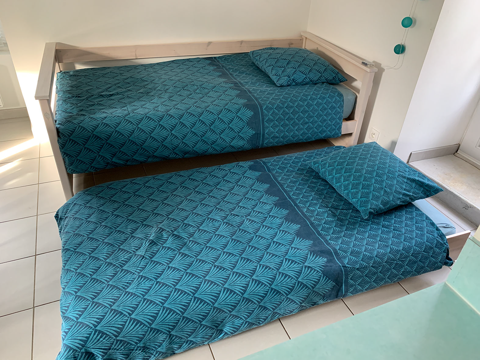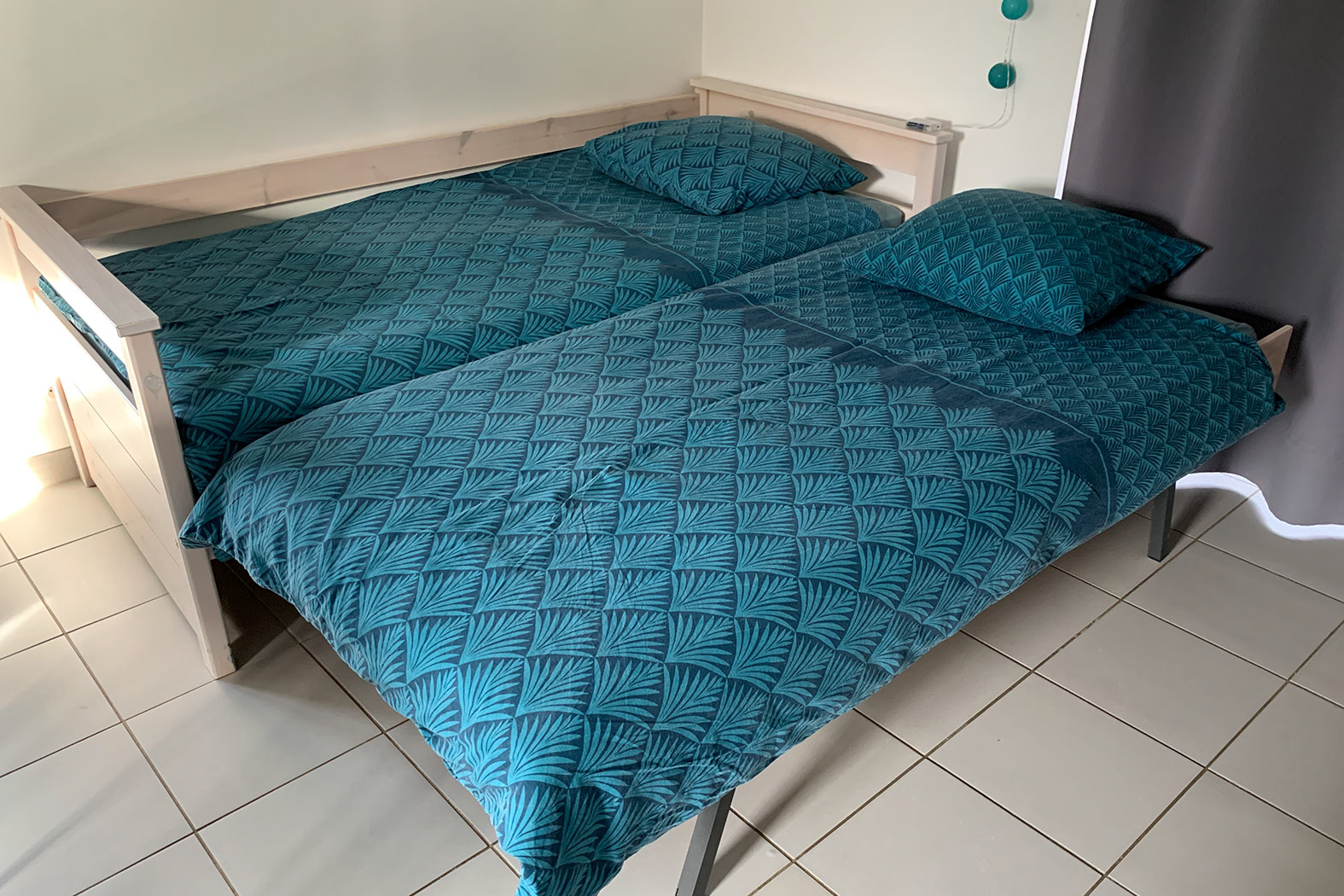 - Une banquette-lit (2 lits simples de 90x190) dans la partie séjour avec télévision.