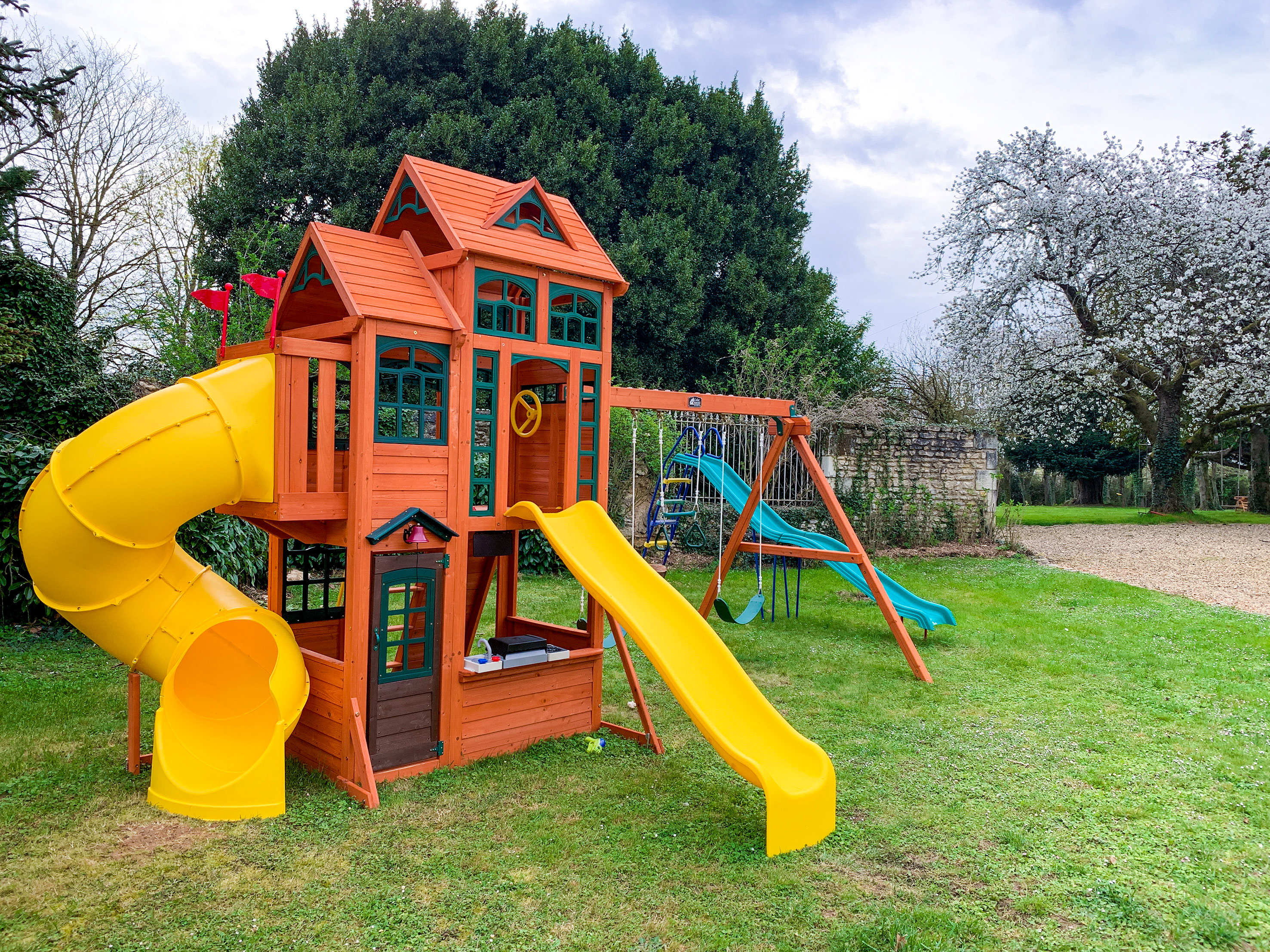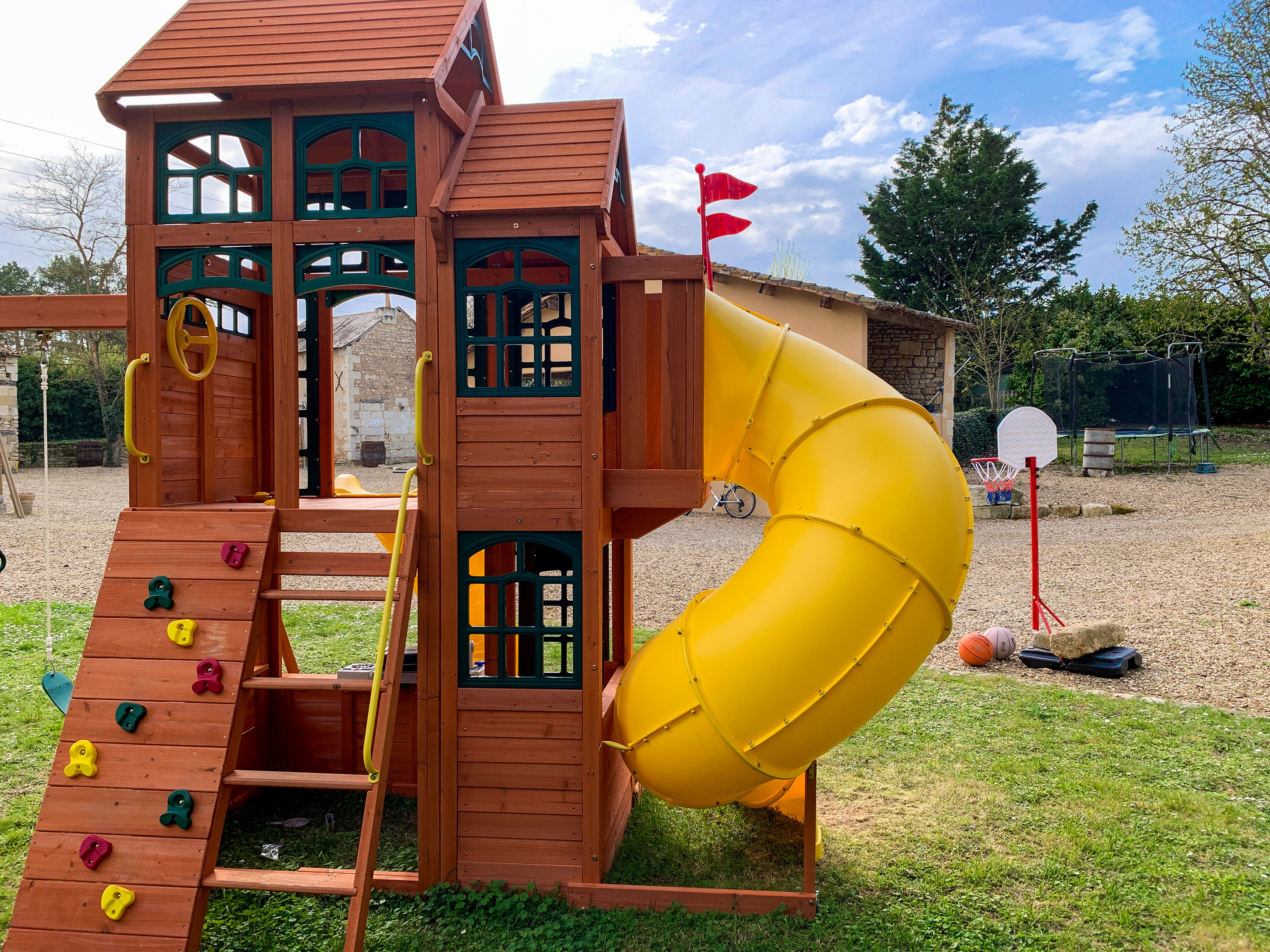 Mais aussi un espace de jeux pour les petits et les grands : aire de jeux, balançoire, toboggan, trampoline, tyrolienne, table de Ping Pong, terrain de pétanque…