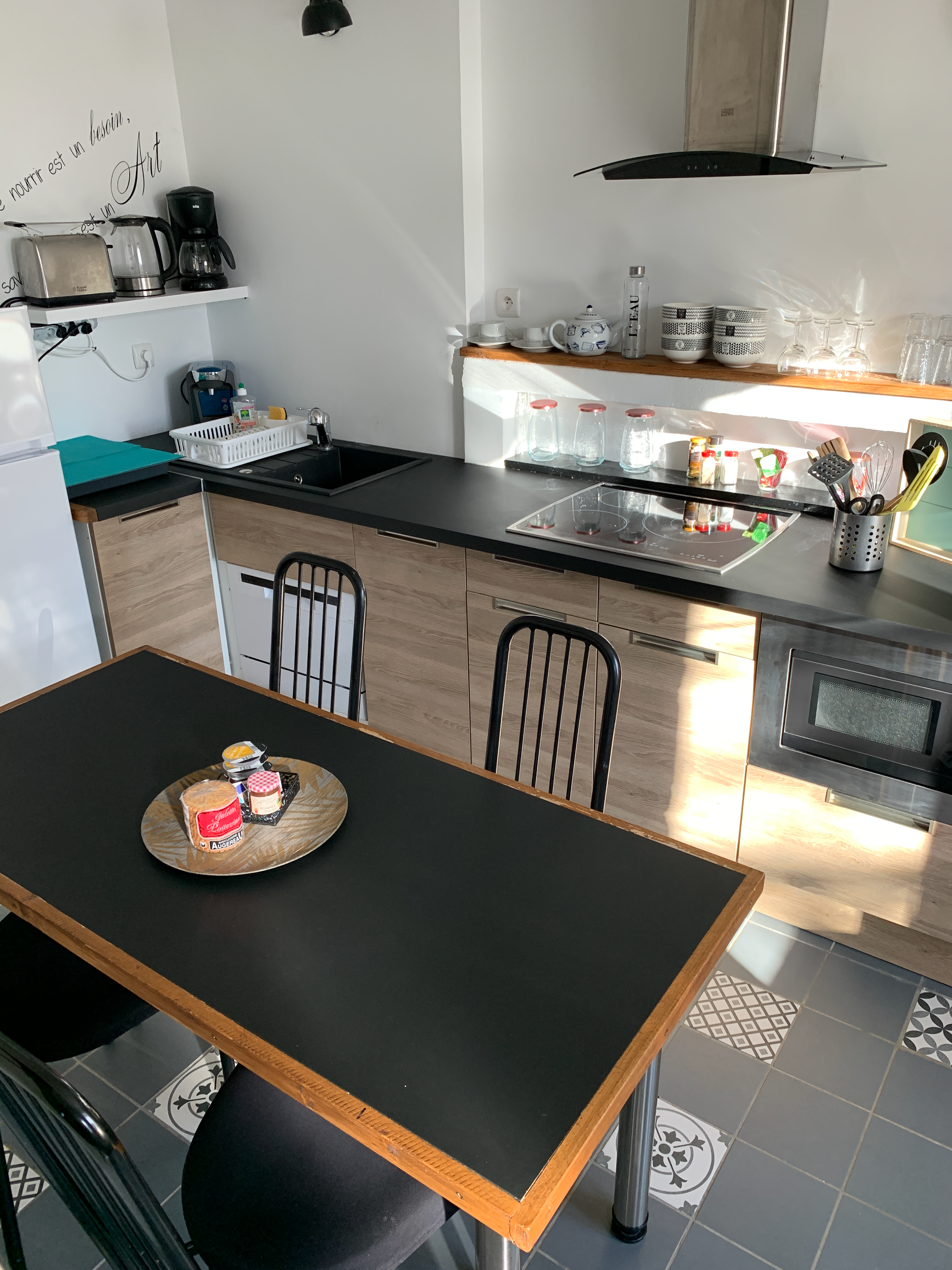 - Une cuisine équipée (Frigo, Lave vaisselle, micro-onde, Four, Tassimo, cafetière filtre, petits électroménager, etc...)