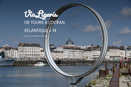 Île de Nantes, quai des Antilles : changement de formes... un peu dans la même veine que les lignes d'oreilles de lièvre, les anneaux du plasticien Daniel Buren, associé à l'architecte Patrick Bouchain, symbolisent le passé négrier de la ville. Les cercles représentant les liens enserrant les chevilles des esclaves. Oeuvre créée pour le festival d'art contemporain, Estuaire 2007. Avec l'église Notre-Dame-de-Bon-Port, dans le viseur.