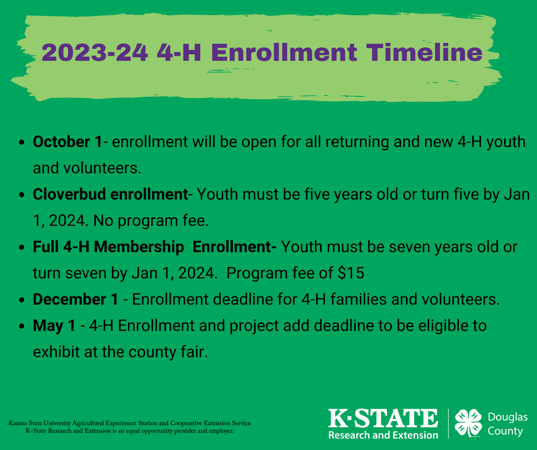October 1 - 4-H Enrollment Begins for 2023-2024 4-H Year