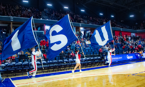 A big part of the fandom resides under the basket of the student section each home game. It's here where members of Sigma Tau Gamma eagerly await, with a headful of stats and random facts gathered from social media, about the opposing players. "We get a little rowdy," admits Owen Ballard, senior kinesiology major. "We are loyal and committed, no matter how the team plays. A fan doesn't necessarily have to be as loud as we are, but you have to be invested in our players. They know we are there. They feel it."