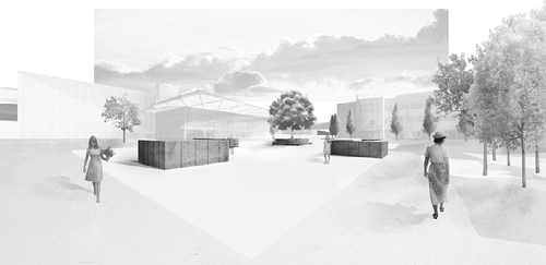 Situated within an open field designed to encourage moments of engagement and contemplation, “Pixels” serves as a dynamic installation that prompts exploration, interaction, and reflection. This theater of observation examines the relationship between material and action, as well as the perception of space from opposing viewpoints. Major paths along each side draw passersby in, inviting them to explore each pixel freely. The design merges the Techne principles of material and human interaction, intently forming each pixel to engage visitors and foster meaningful experiences. By shifting based on perspective, “Pixels” challenges traditional spatial boundaries and bridges the gap between structured design and spontaneous human activity.