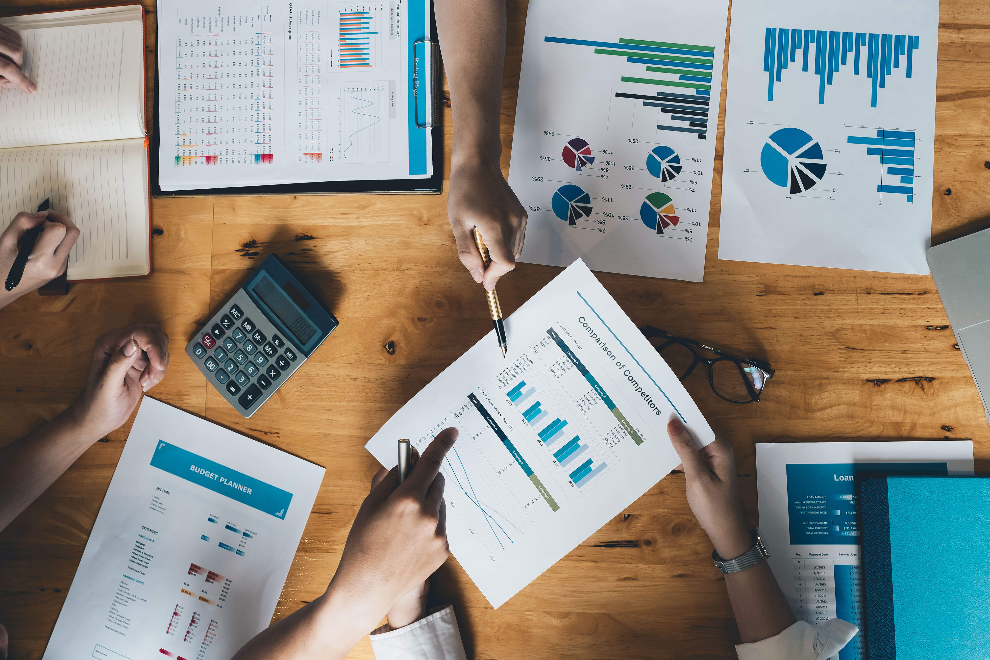 Created with an image by Natee Meepian - "Top view of Business people team working together at office desk with laptop, tablet, financial paperwork and reports"