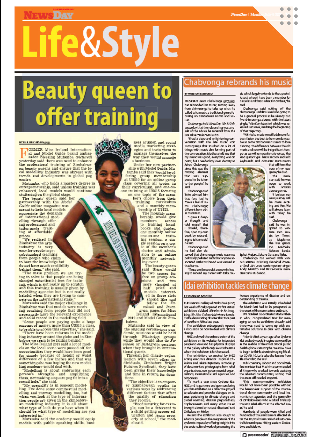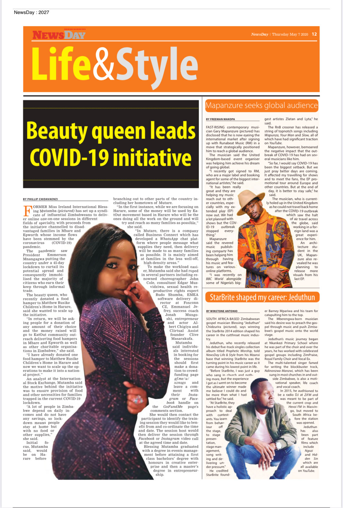 May 2020 - Food hamper, sanitiser and toiletries donation to Matthew Rusike Children's Home in Harare (Zimbabwe) June 2020 - Raised funds through GoFundMe campaign to distribute food hampers to over 100 families in and around the Mutare (Zimbabwe) region July 2020 - Started confidence coaching and pageant training academy for young people of Zimbabwean heritage in partnership with Model Guide ZW Magazine