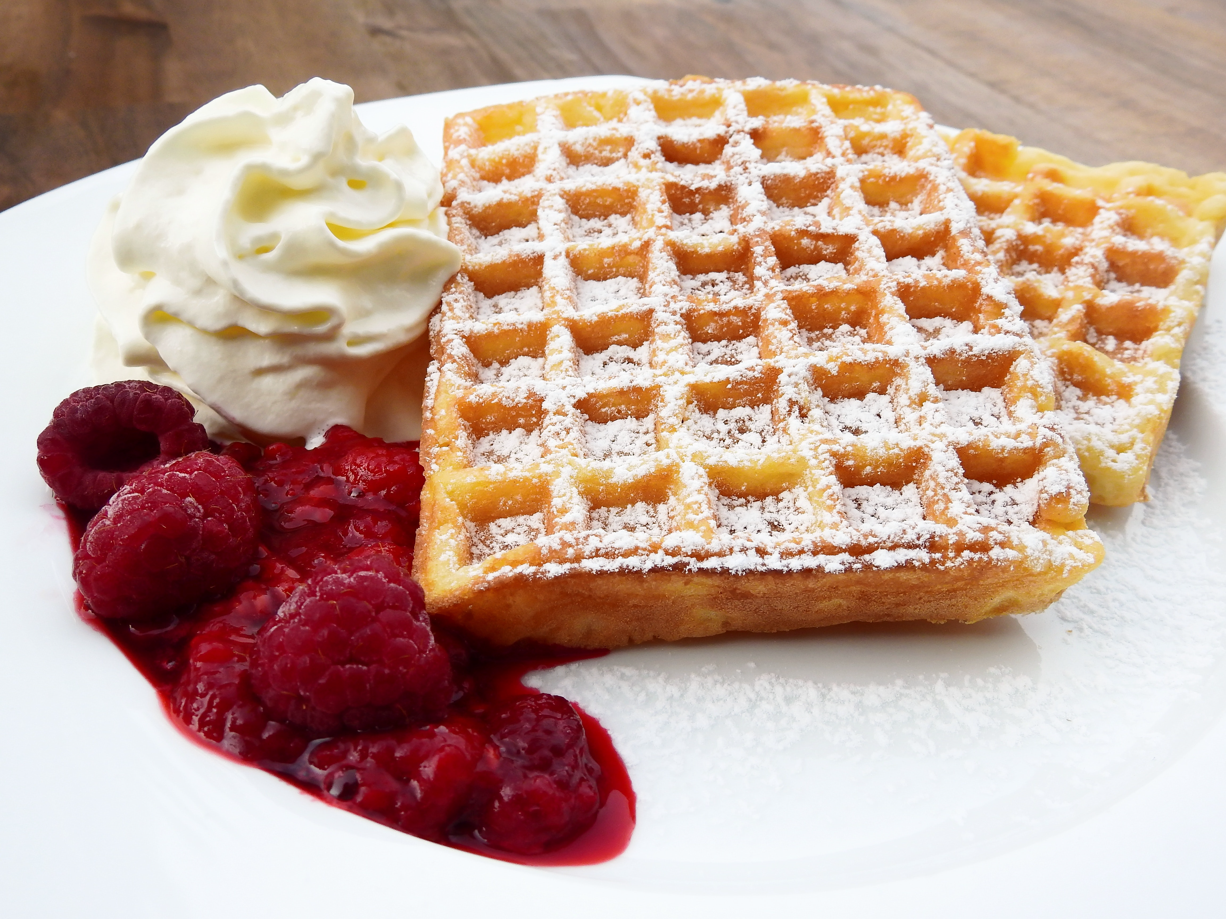 - Fresh Belgian Waffles served with Butter, Warm Maple Syrup & Seasonal Berries