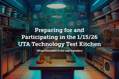 - Prepare and bring a laptop computer with a power charger and WiFi connectivity. The UTA Technology Test Kitchen will have essential hands-on moments throughout. A laptop is highly preferable to a tablet.