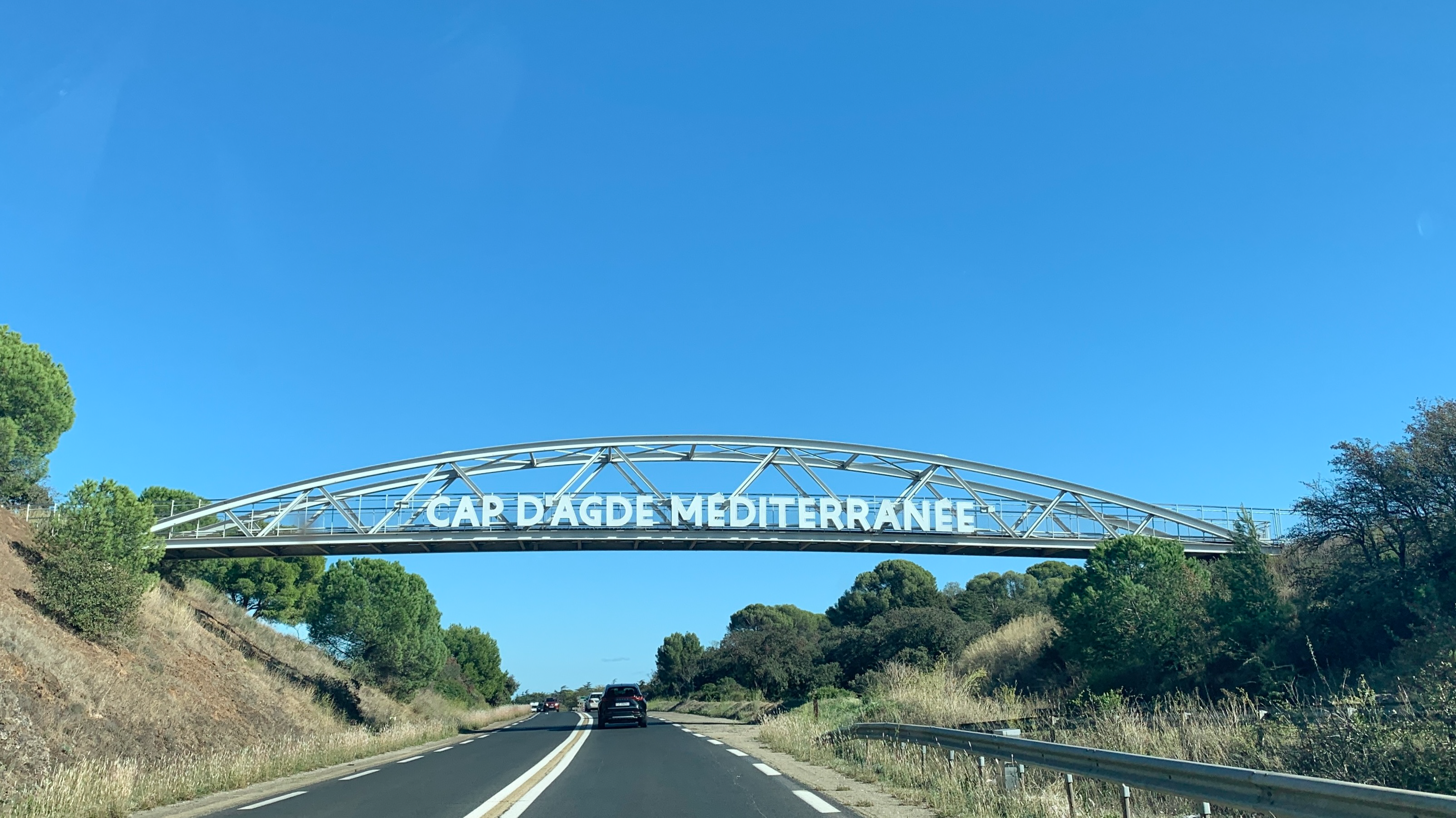 Du très bleu à travers le pare-brise sale, dès l’entrée en Occitanie…
