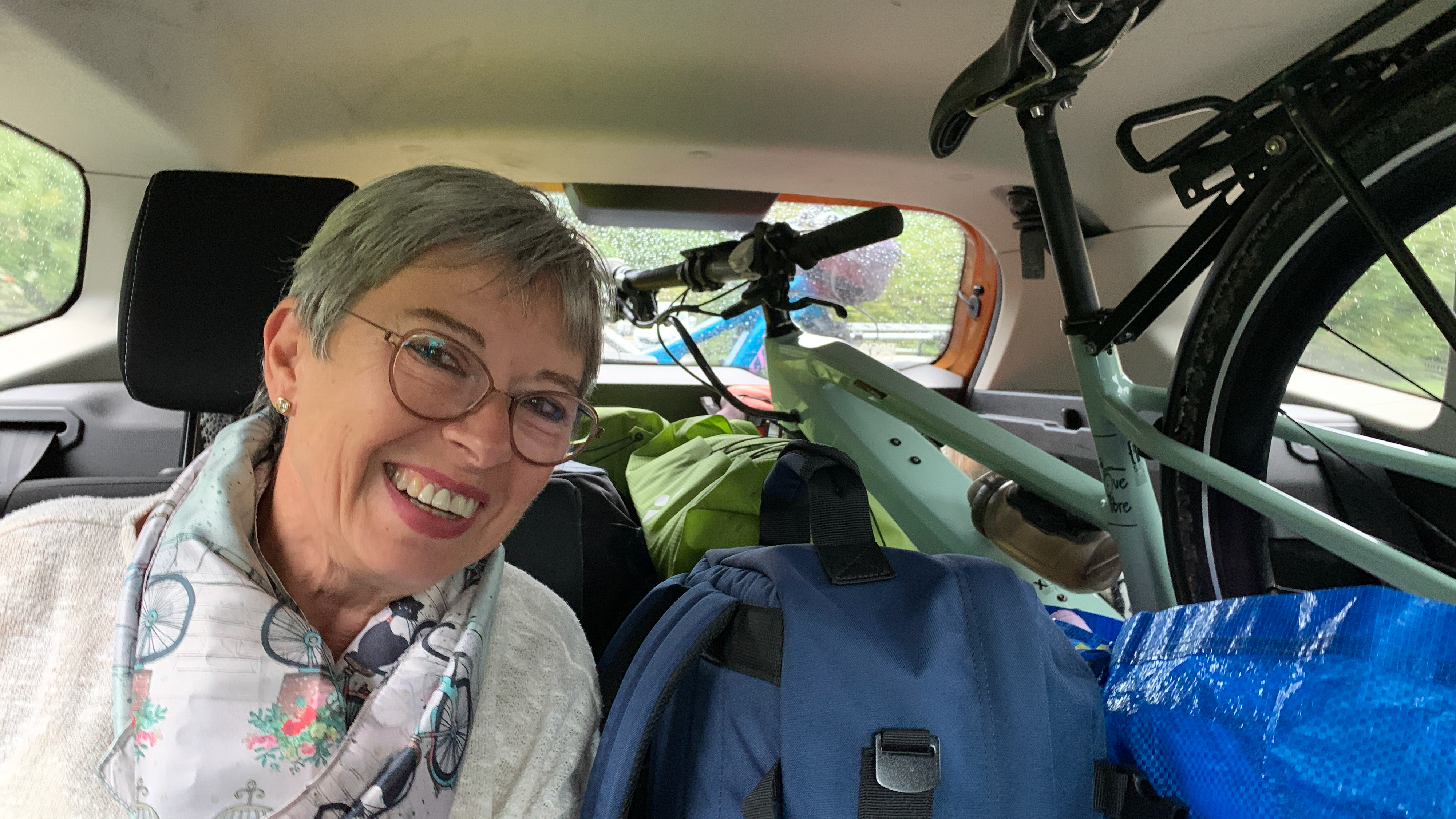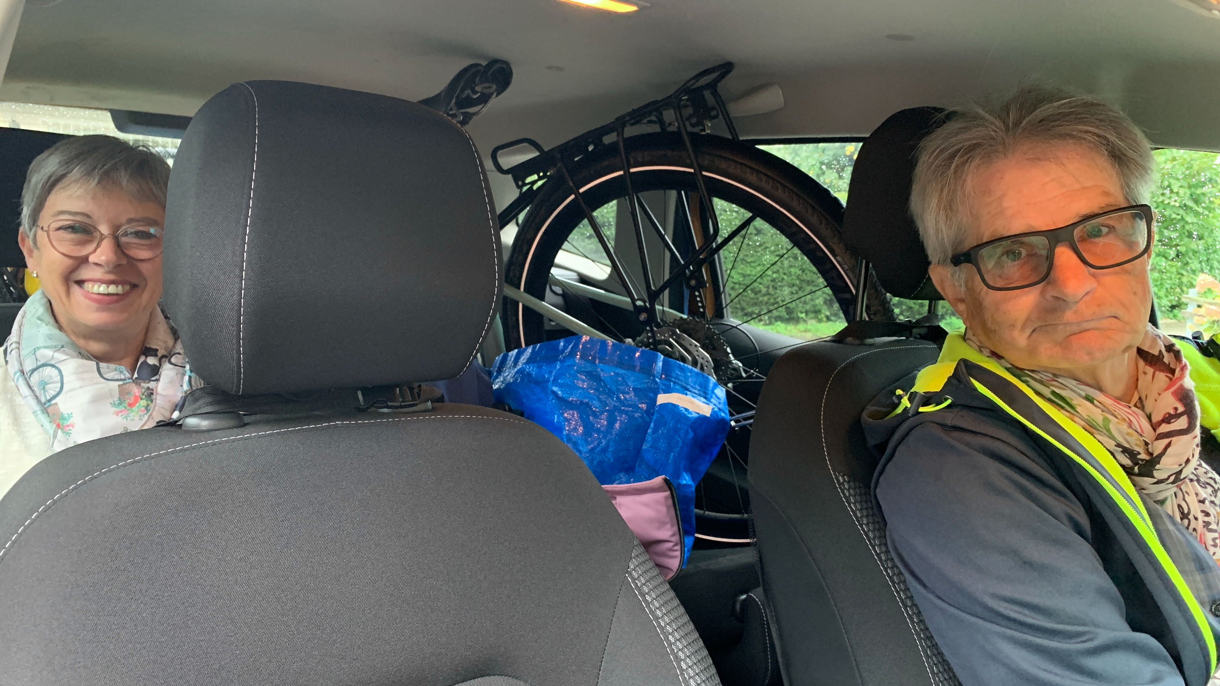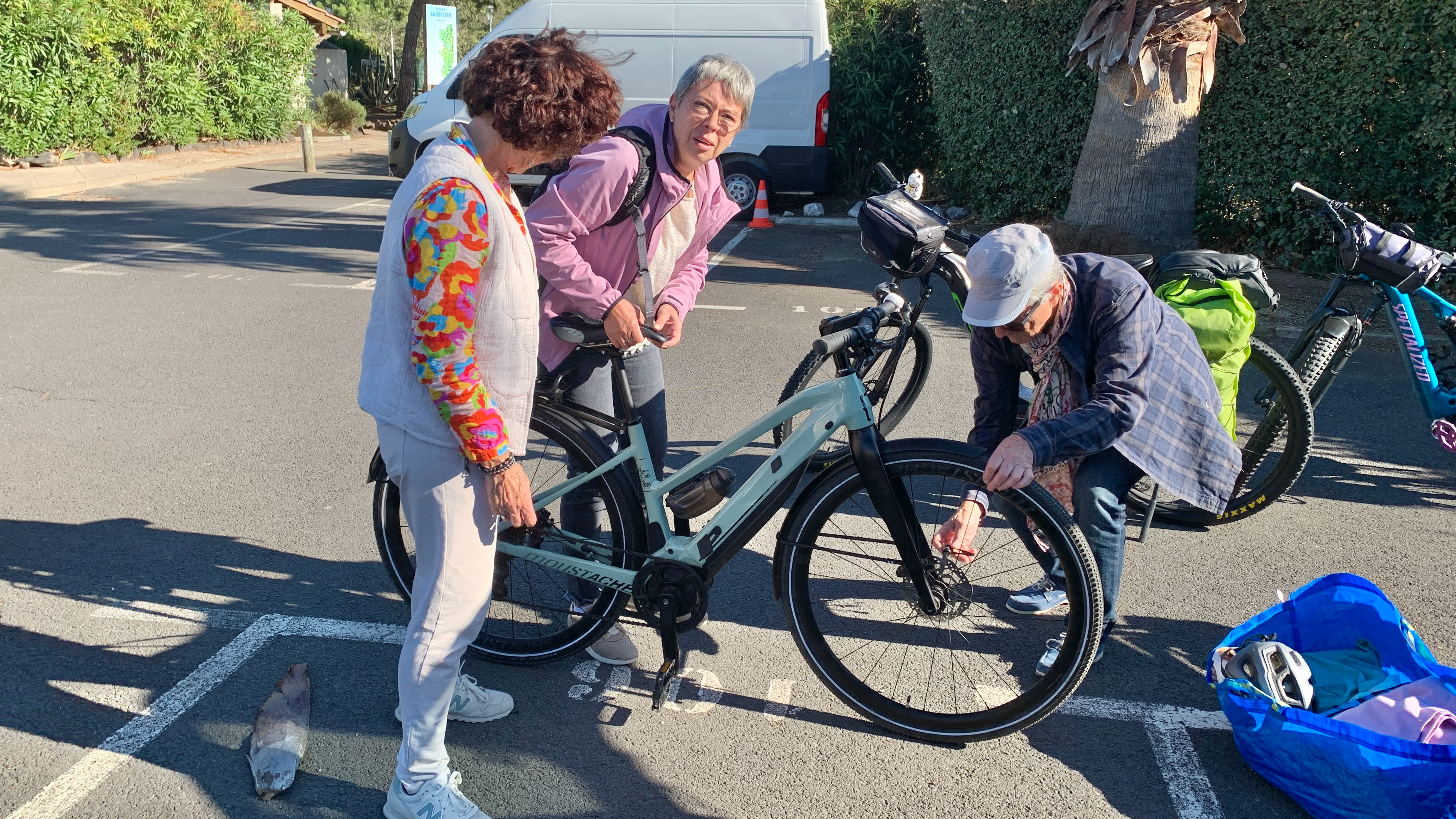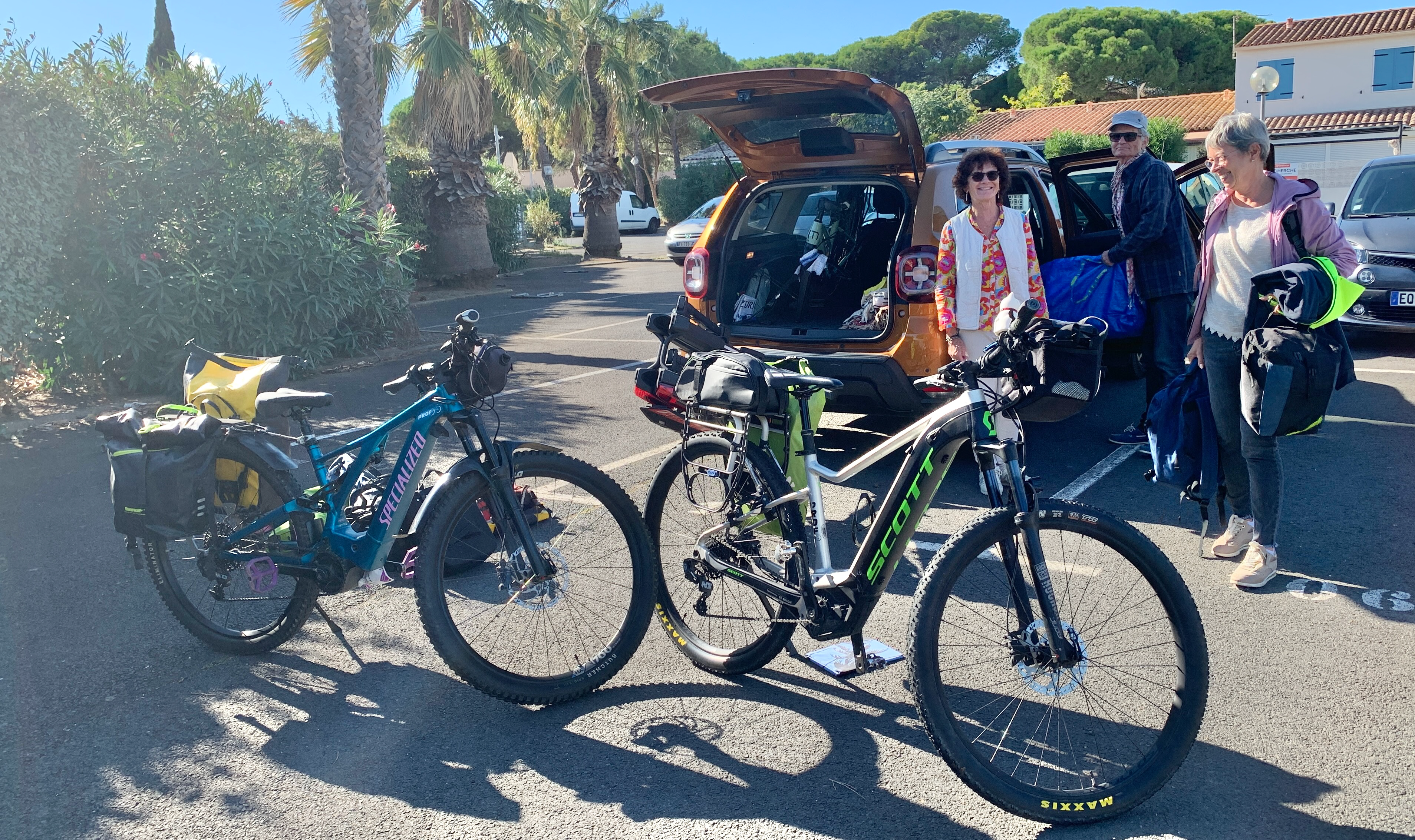 Marianne, avec armes et bagages est arrivée hier à Saint-Blaise. Ce matin chargement des trois vélos et des sacs pour rejoindre Evy au Cap d’Agde.