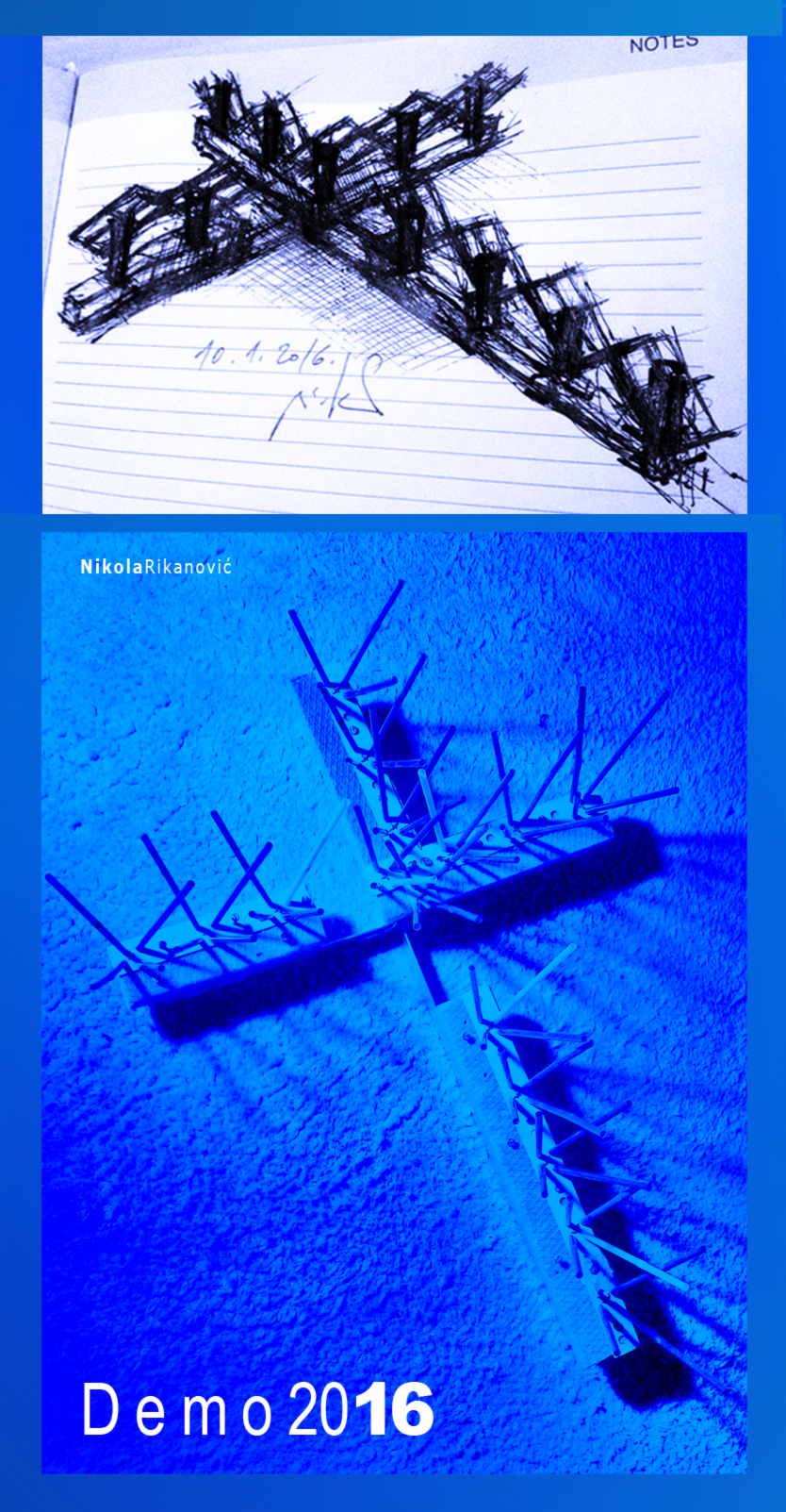 Attraverso queste domande, Nikola Rikanovic conduce l'osservatore ad una riflessione sui sentimenti umani nel momento in cui l'uomo va a perdere qualsiasi punto di riferimento, cadendo nel caos e nel disordine. In questo vortice di perdizione l'uomo arriva a distruggere un muro di certezze assolute. L'essere umano si ritrova solo e cerca di superare se stesso divenendo una sorta di "dio" e di conseguenza "superuomo". L'uomo vuole, quindi, sostituirsi a Dio? E quando il superuomo arriverà al termine della sua vita non si troverà nuovamente di fronte al caos e alla paura? L'artista smuove gli animi nel momento in cui sostituisce la figura di Cristo con quella di una ragazza e rivolgendosi al pubblico chiede: "Chi è la ragazza? Chi è Cristo? Chi è il superuomo?" Soggetto e oggetto si fondono insieme e innescano un dialogo perpetuo tra essi e chi osserva. Un'installazione che ha in sè il ricordo di quella croce di ghiaccio su cui si adagiò Marina Abramovic durante la performance Lips of Thomas (1975).