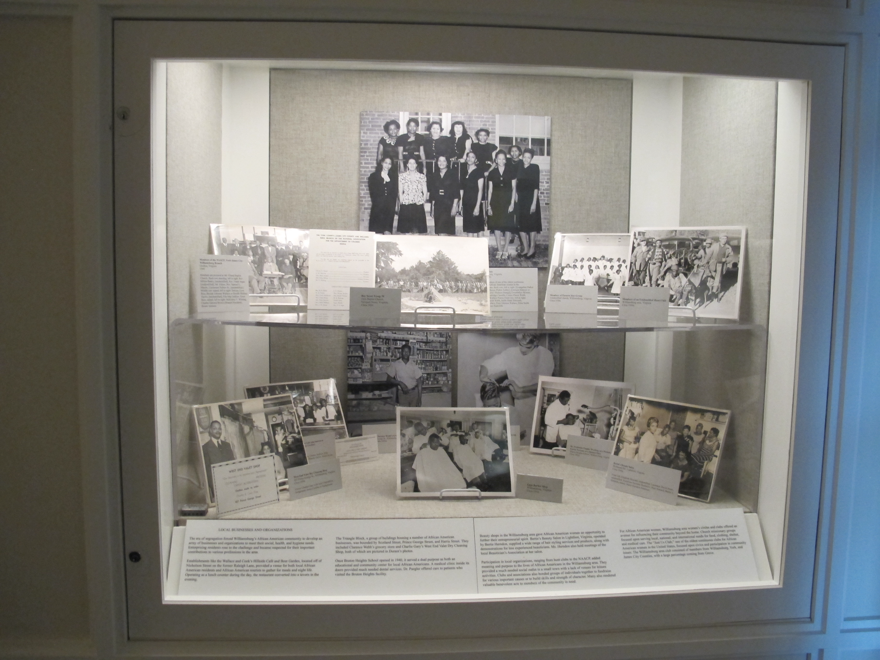 In the mid-twentieth century, African Americans operated a wide range of businesses in Williamsburg, including groceries, restaurants, night clubs, medical clinics, barber and beauty shops, dry cleaning establishments, and mortuaries.