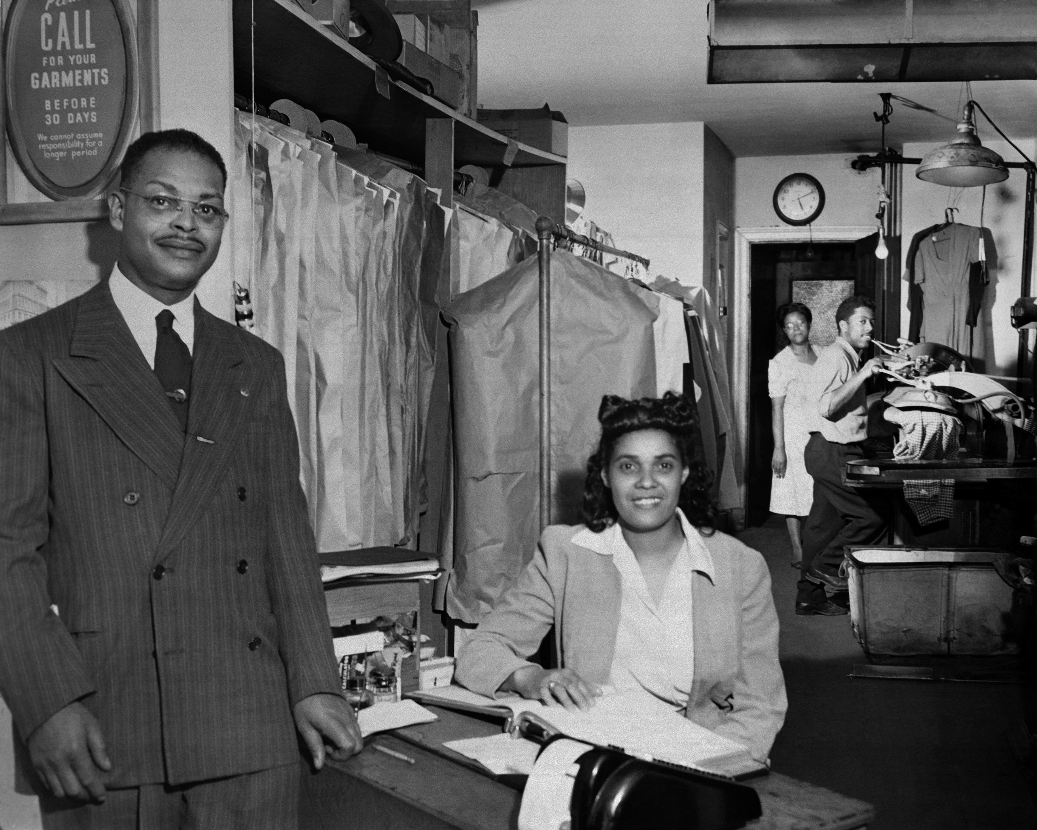 The Triangle Block, a group of buildings housing a number of African American businesses, was bounded by Scotland Street, Prince George Street, and Armistead Street. Durant photographed the interiors of Clarence Webb’s grocery store and Charles Gary’s West End Valet Dry Cleaning Shop. According to local resident Fred Frechette, Mr. Gary “won all the valet business from both the Inn and Lodge. At the height of his success, he had ten employees and built himself a beautiful home in James City County.”[2]