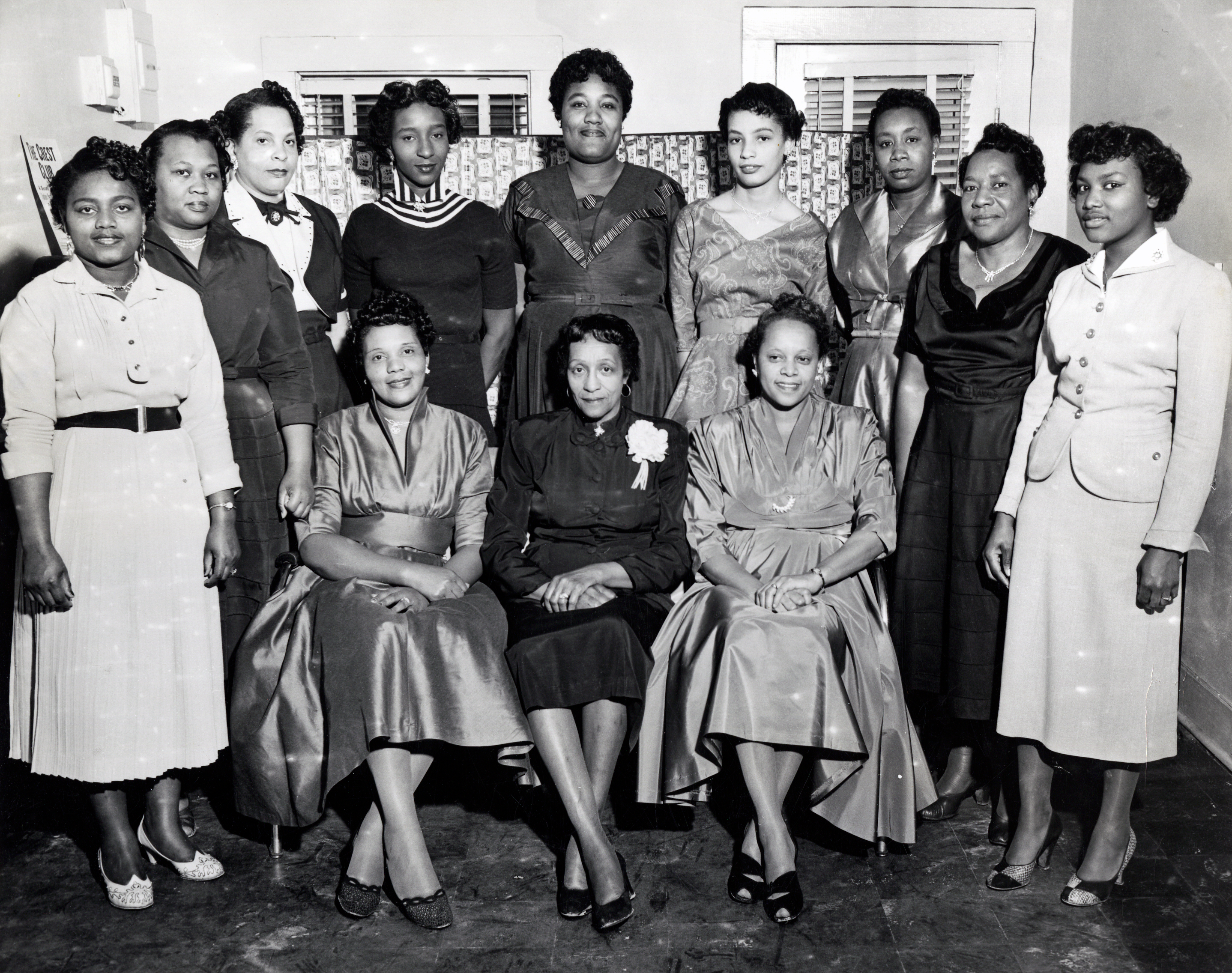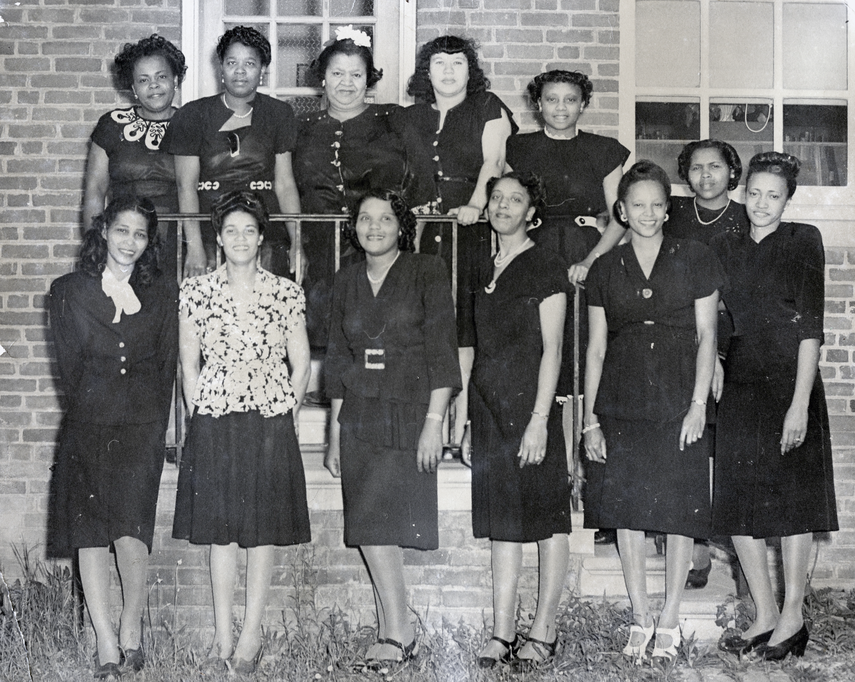First Baptist Church’s new location on Scotland Street was in the heart of an African American residential and business area, of which the Prince George Triangle Building was also a part (see Local Businesses section). Durant’s mother, Mrs. Bessie Durant, lived with Durant down Scotland Street near Braxton Court, a housing development created by an African American builder. She appears in a photo displayed here of the Senior Missionary Society at First Baptist Church. This group, shown with their president, Mrs. Edna Whiting, had the distinction of including some of the oldest members of the congregation.[5]