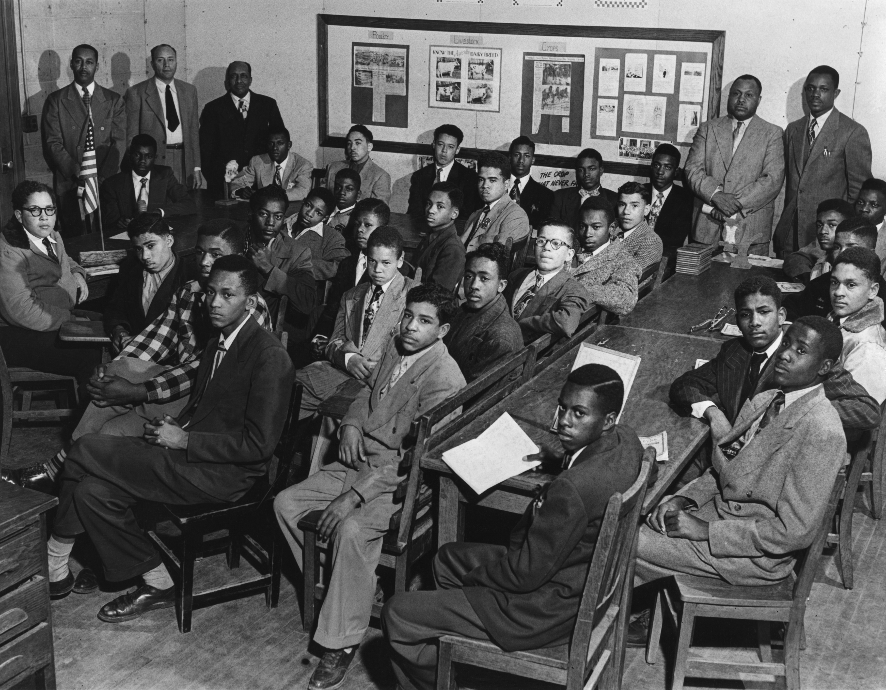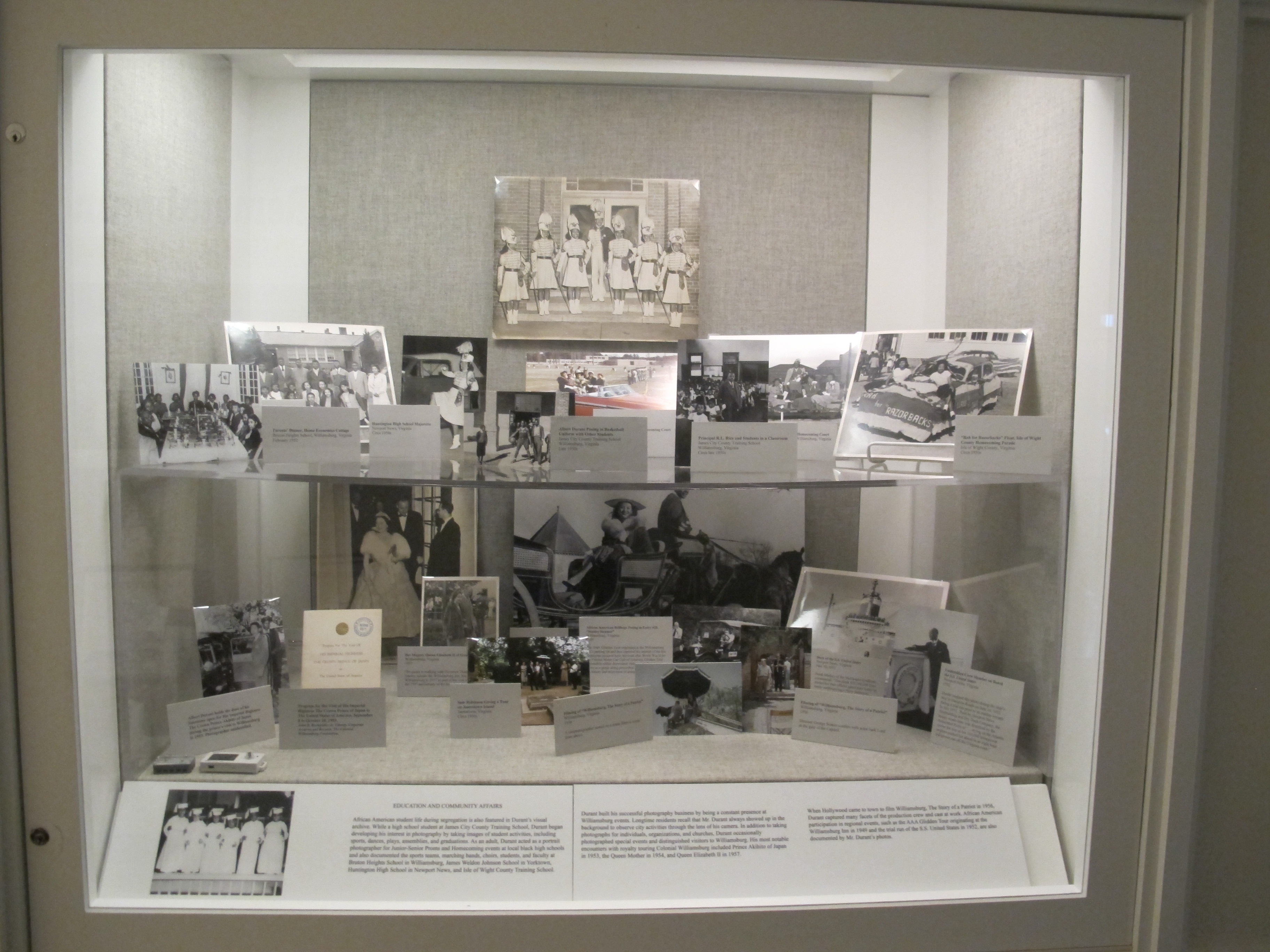 A significant segment of the Durant Collection captures the educational experience of African Americans in the Williamsburg area between the late 1930s and the 1950s. Two major segregated school facilities, James City County Training School and Bruton Heights School, are well documented in images of classrooms showing students and faculty; snapshots taken during sporting events, performances, and student social events; and graduation photos.
