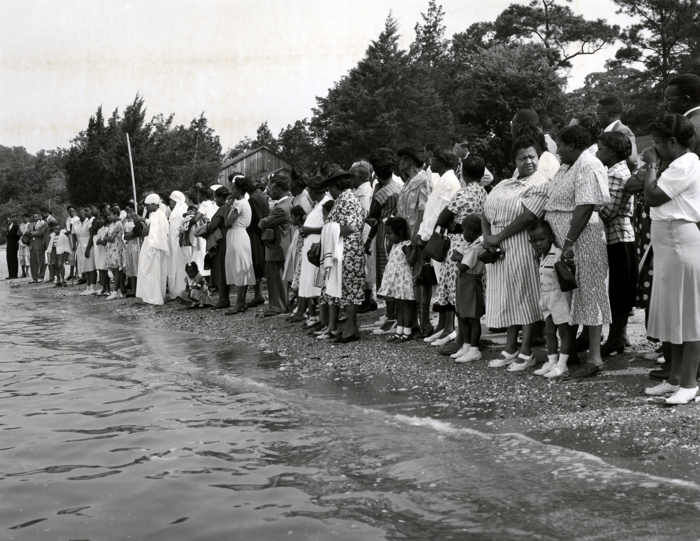 Durant’s camera witnessed baptism via full immersion, an important symbolic moment. The Durant collection encompasses numerous scenes of young men and women dressed in white robes and headdresses gathered by rivers for the sacrament of baptism. Members of the congregation stand alongside them as witnesses and spiritual supporters. Some of Durant’s photos also capture the life-changing moment of a baptismal candidate being lowered or raised from the water by a minister or deacon. Due to the private nature of these experiences, the photos of baptismal immersion are not shared online. However, they are available to view in person at the Rockefeller Library and offer a powerful testimony of each individual’s step towards developing a strong faith.