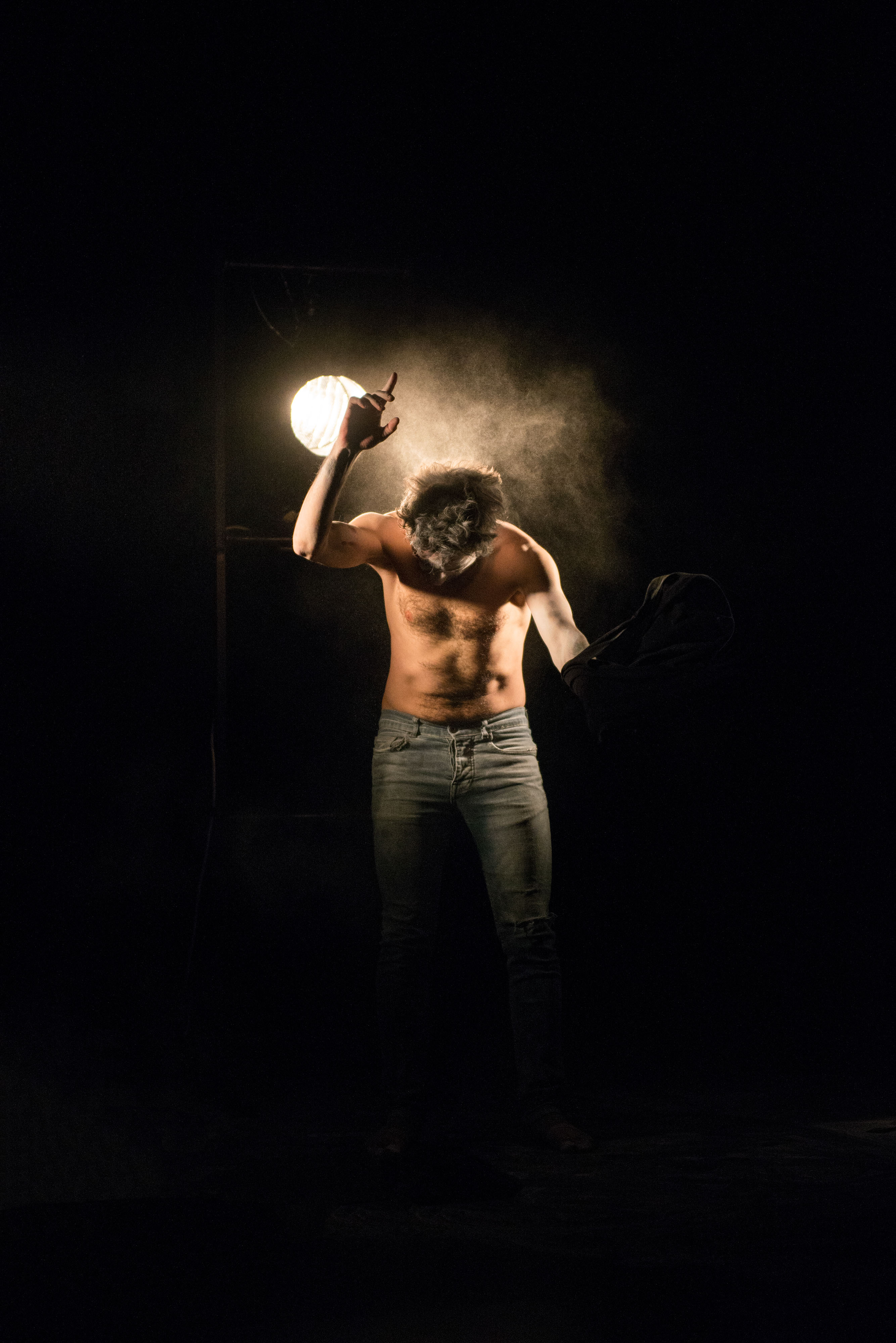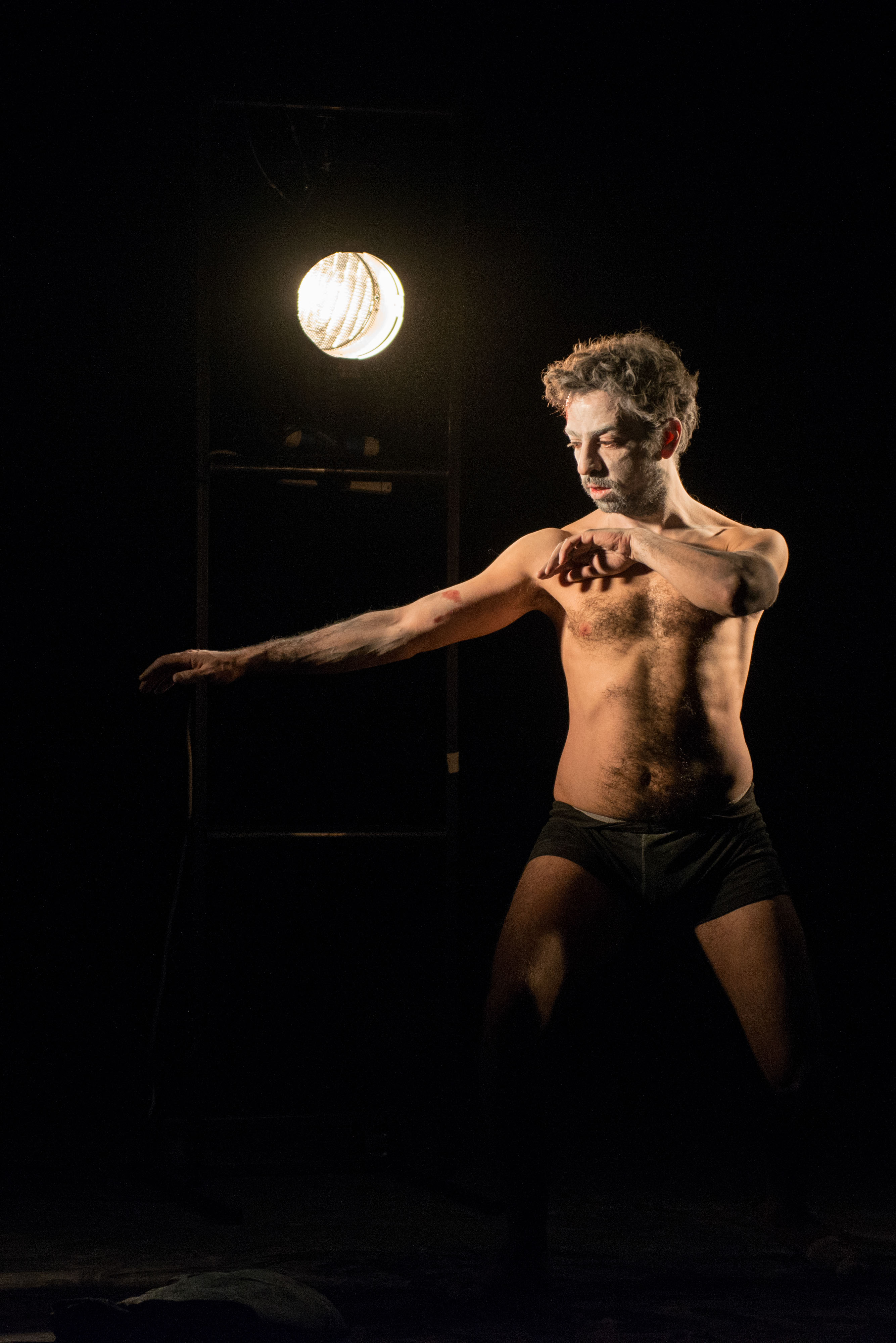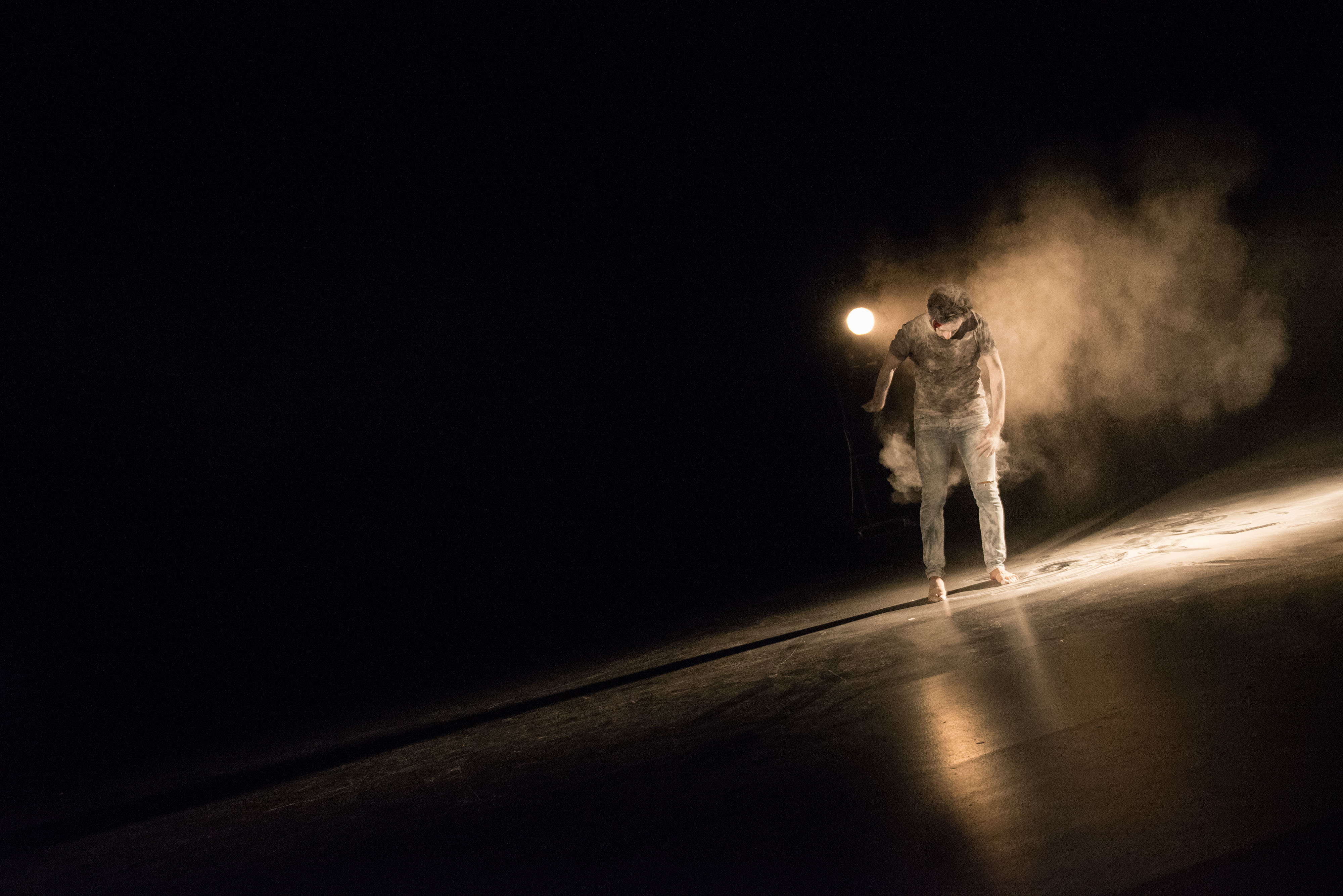 The dance performance Dust deals with the fate of the city of Aleppo, and counterparts from the affected cities in Syria and elsewhere in the world. Through a Syria character stand's up from the rubble of the devastated city, screaming through his body in the face of savagery, the silent world about the new massacre. Screaming in the face of isolation imposed on him, he is doomed and alone in his fate. Then the character try's to blend into a contemporary human figure, to simulate the profound solitude that experienced in the face of large events such as terrorism and extremism. The fear is a siege for movement for transmission to the cool stillness. Dust creates limited in space and movement.