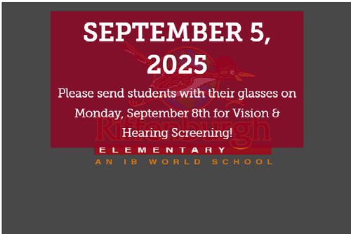 Please send students with their glasses on Monday, September 8th for Vision & Hearing Screening!