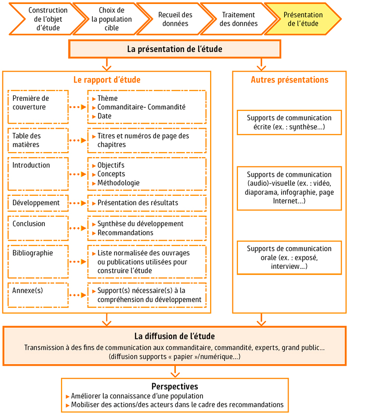 Principales notions : Présentation de l'étude, rapport d'études, perspectives