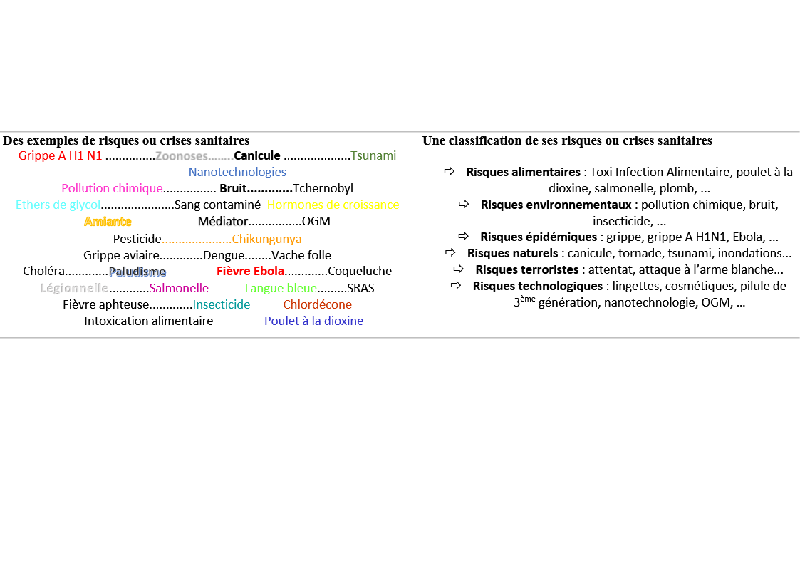 Principales notions : Préoccupation - risque - risque sanitaire - alerte sanitaire - crise sanitaire - problème de santé