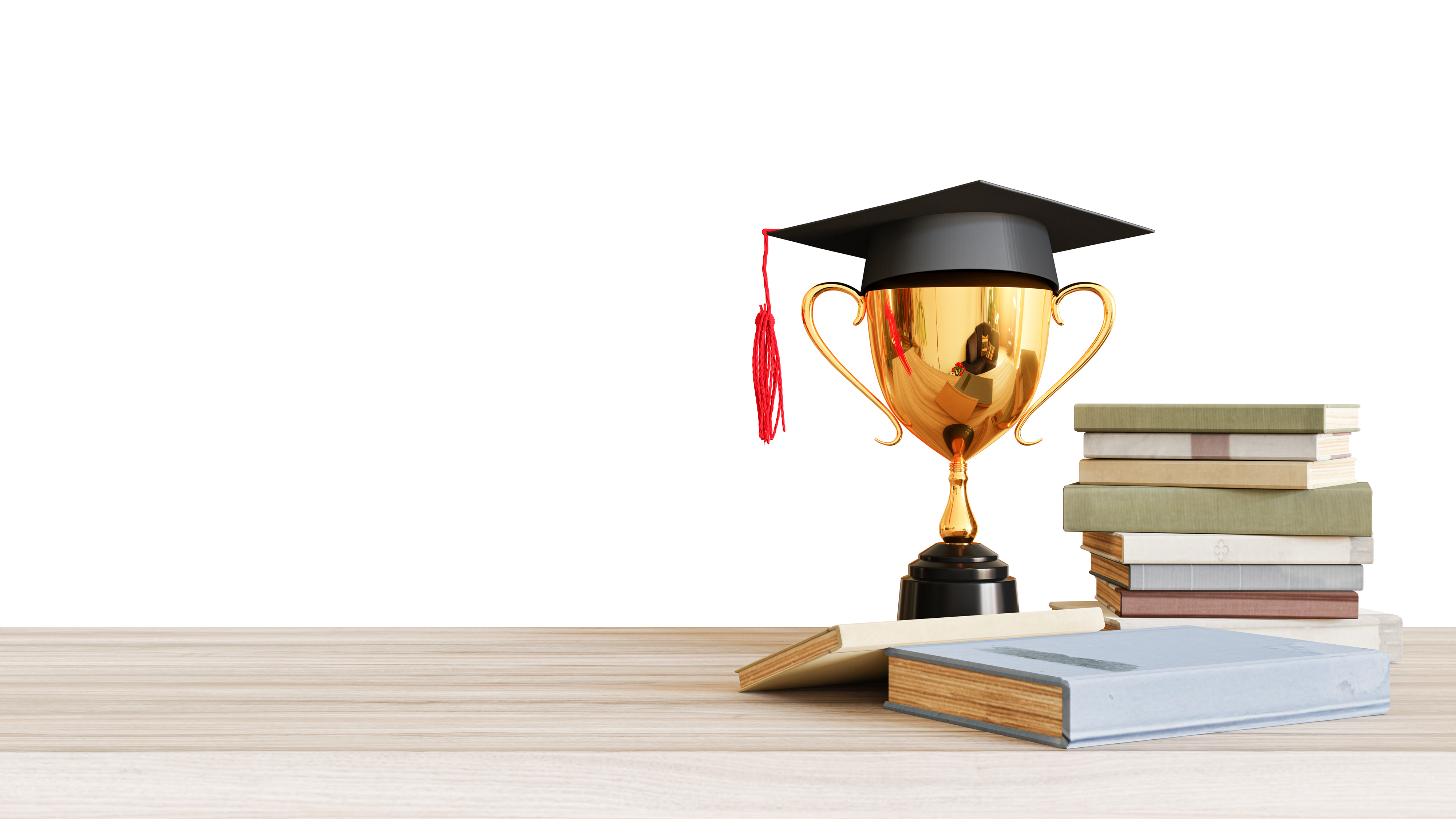 Created with images by nonnie192 - "graduation hat with golden trophy on wood table. 3D render" • FAMILY STOCK - "Asian Little girl wearing a graduation cap and holding diploma on white background" • Irina Schmidt - "Two little kid boys with backpack or satchel. Schoolkids on the way to school. Healthy children, brothers and best friends outdoors on street leaving home. School's out on chalk desk. Happy siblings."