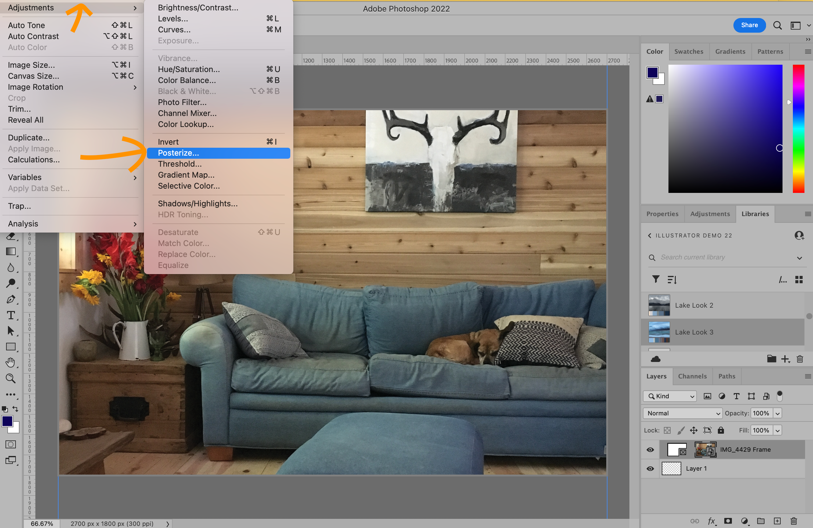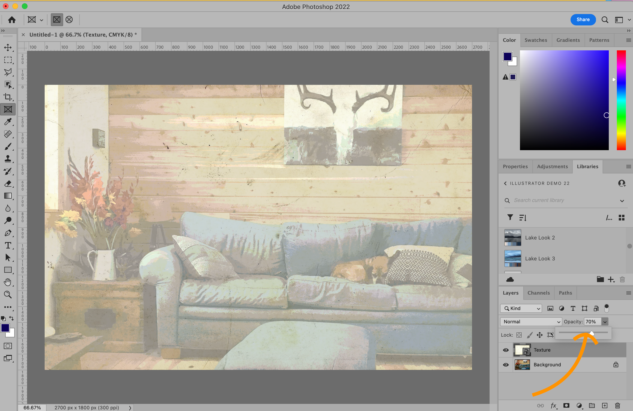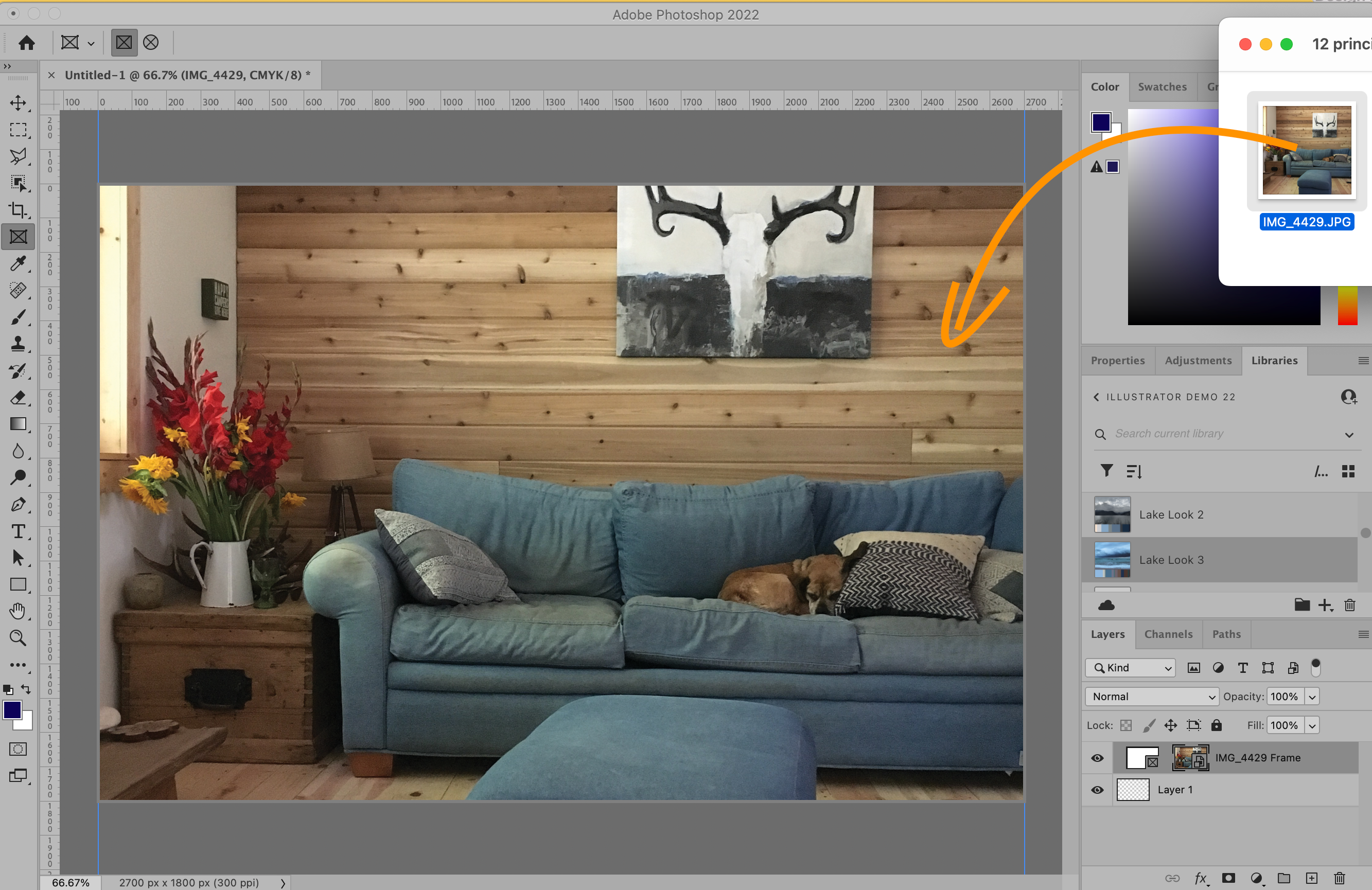 The choices you make will be driven by the point you are trying to communicate. For example, you may want to communicate the coziness of your family home by focusing on a glowing wood-stove in the corner of your living room, or you may want to characterize the uniqueness of your street by taking a panoramic shot that showcases the individualistic architectural styles in your neighborhood. Take as many photos as you can and save them to either your desktop folder or Creative Cloud.