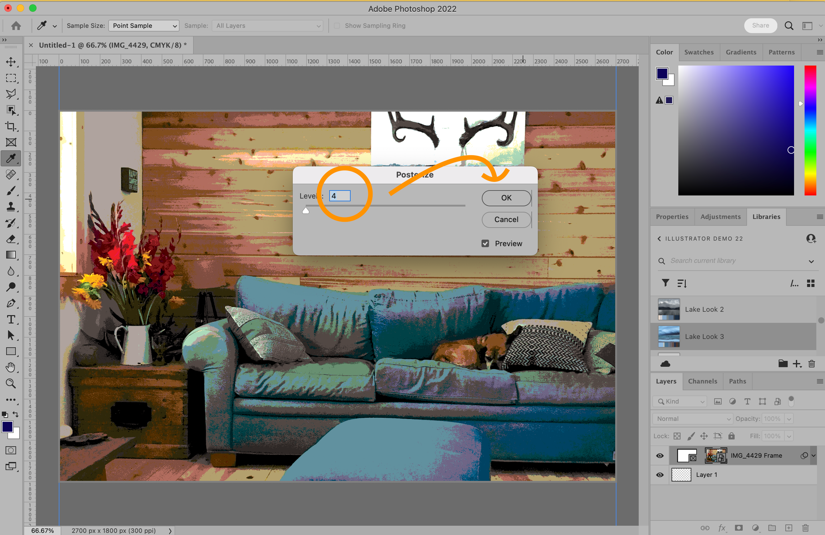 Select one final image that you want to use in your postcard. You will edit this image in Adobe Photoshop. The aim is to streamline and simplify the image using filters. You will also add textures to achieve a vintage look. Follow the steps below to guide you through the process. Save your final image as a PNG in your desktop folder or Creative Cloud folder.