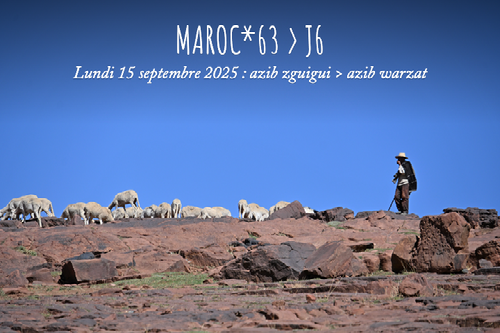 J'ai écrit que nous renonçons à gravir ce sommet. L'étape d'hier était courte afin de se reposer pour effectuer cette montée, 1300 m de D+ tout de même et idem, dans l'autre sens, pour la descente. Un peu assommées par les 3 premiers jours nous avons donc décidé de faire l'impasse sur ce projet. Comme il était prévu de dormir au même bivouac de l'azib Zguigui, Samir a proposé de fractionner l'étape du dernier jour en deux. Ce fut une bonne idée et nous avons passé une excellente journée, contemplative, récréative et paisible.