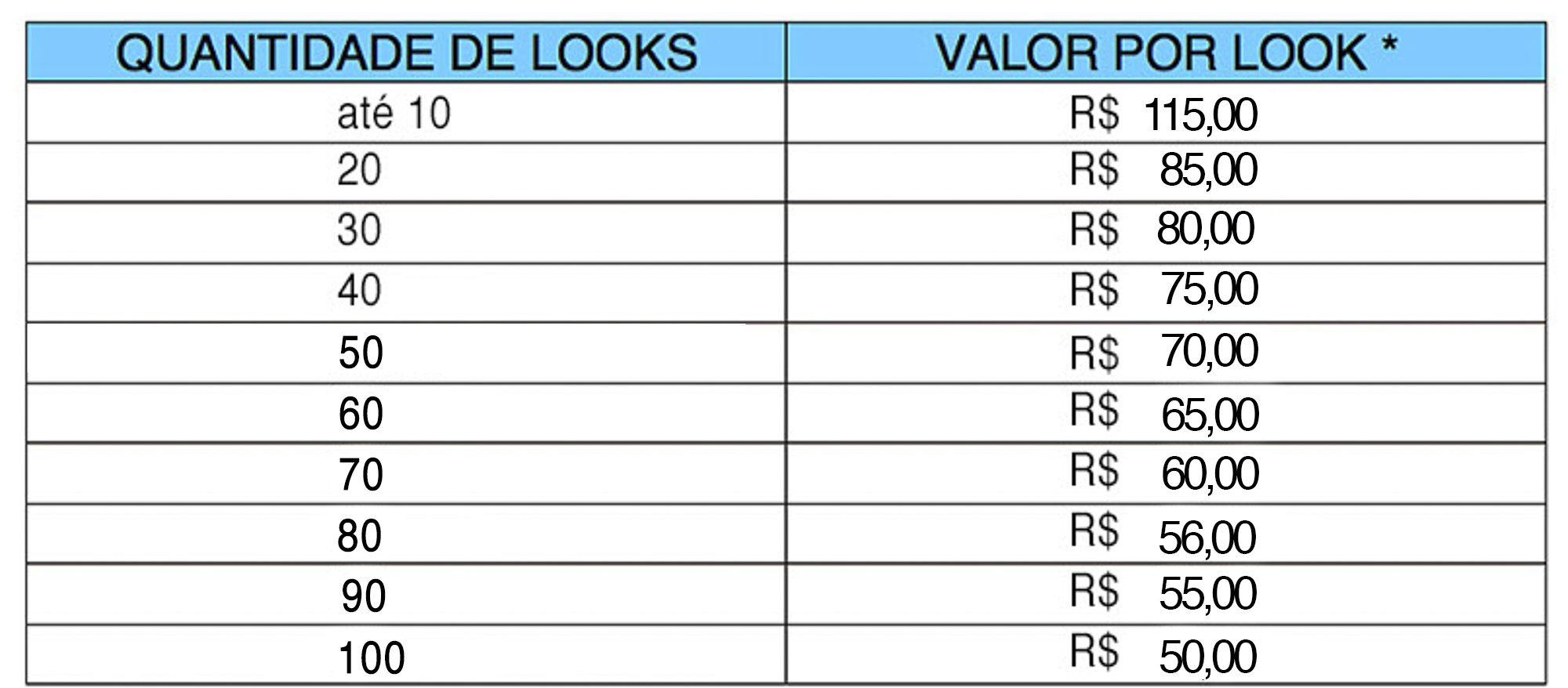 TABELA PREÇO LOOKBOOK