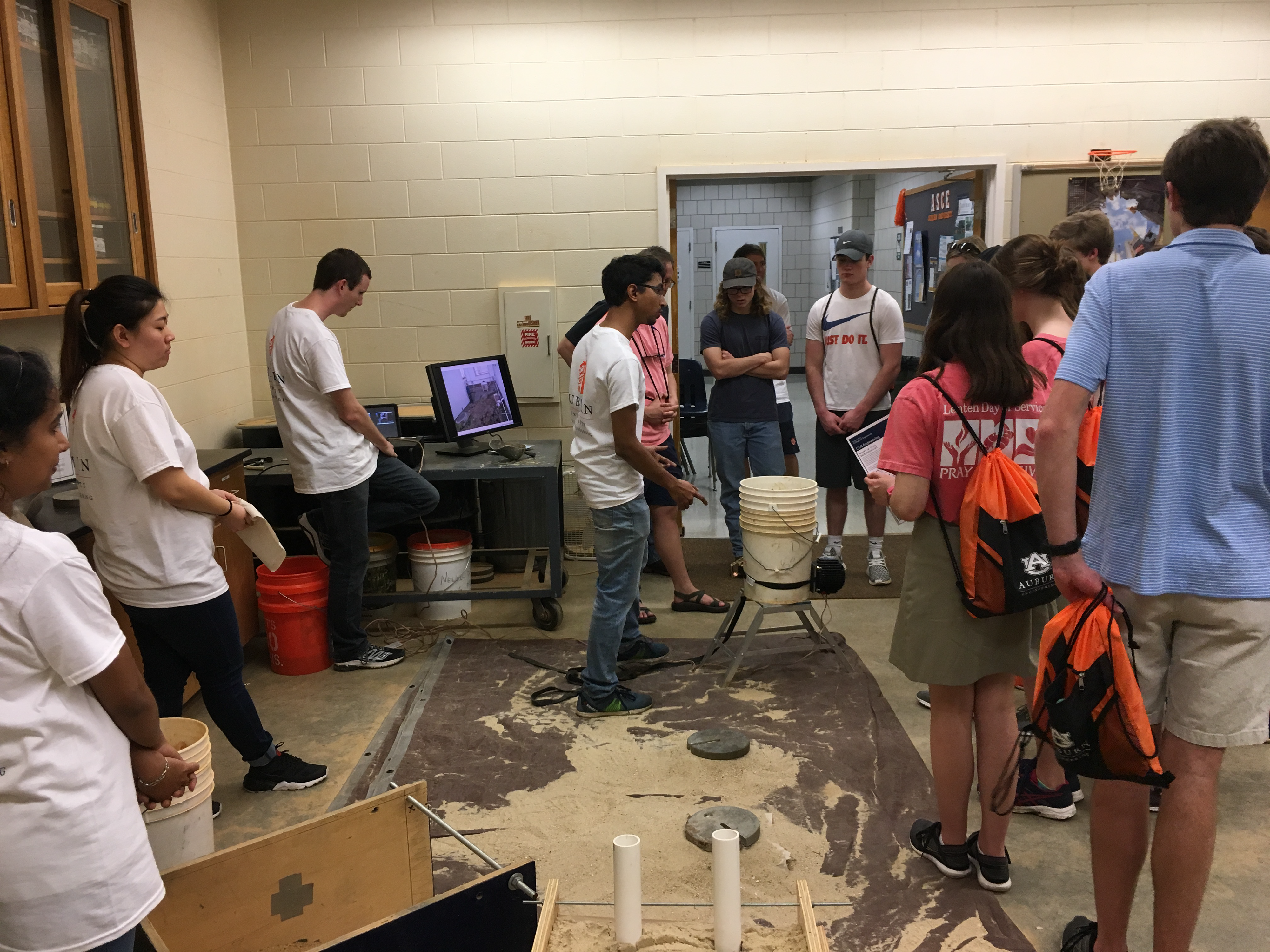 We are actively involved in fostering the next generation of geotechnical engineers through outreach activities and the Auburn Geotechnical Society. Outreach activities include the Samuel Ginn College of Engineering's annual E-Day open house, demonstrations at science and engineering camps, and undergraduate research opportunities. The Auburn Geotechnical Society provides professional development opportunities to geotechnical students through networking, community outreach, and research presentations.