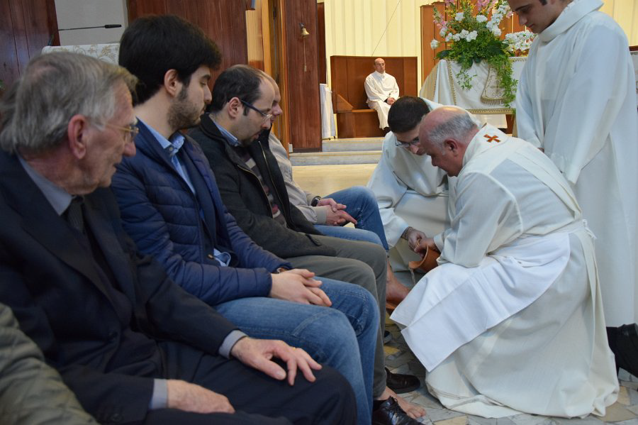 E ti vediamo poi, Maestro e Signore, che lavi i piedi a noi che siamo tue creature; e cinto del grembiule, che è il manto tuo regale, c'insegni che servire è regnare.