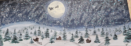 Here's Kit (left) and Eliot hard at work finishing off their festive paintings. We knew we needed to put one of the top of the Newsletter, but we couldn't decide. So we put both names in a hat and one was drawn out. Eliot's is there at the top of the Newsletter, with Kit's photographed below. Well done to you both. Here they are hard at their creative work.