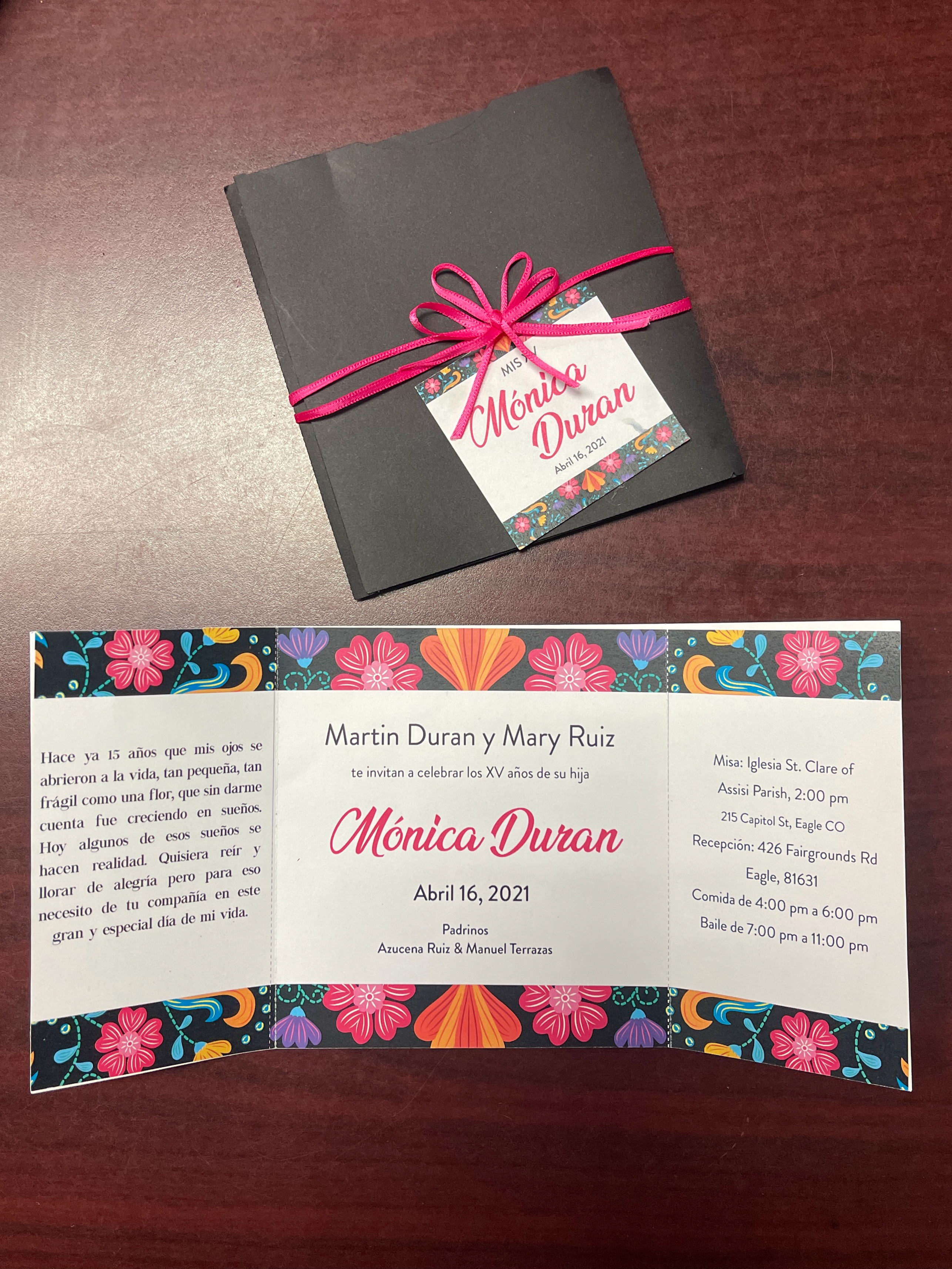 It’s been 15 years since my eye were opened to life, so small, as fragile as a flower, that without realizing it was growing in dreams. How some of those dreams come true. I would like to laugh and cry with joy but for that I need your company on this great and special day of my life.