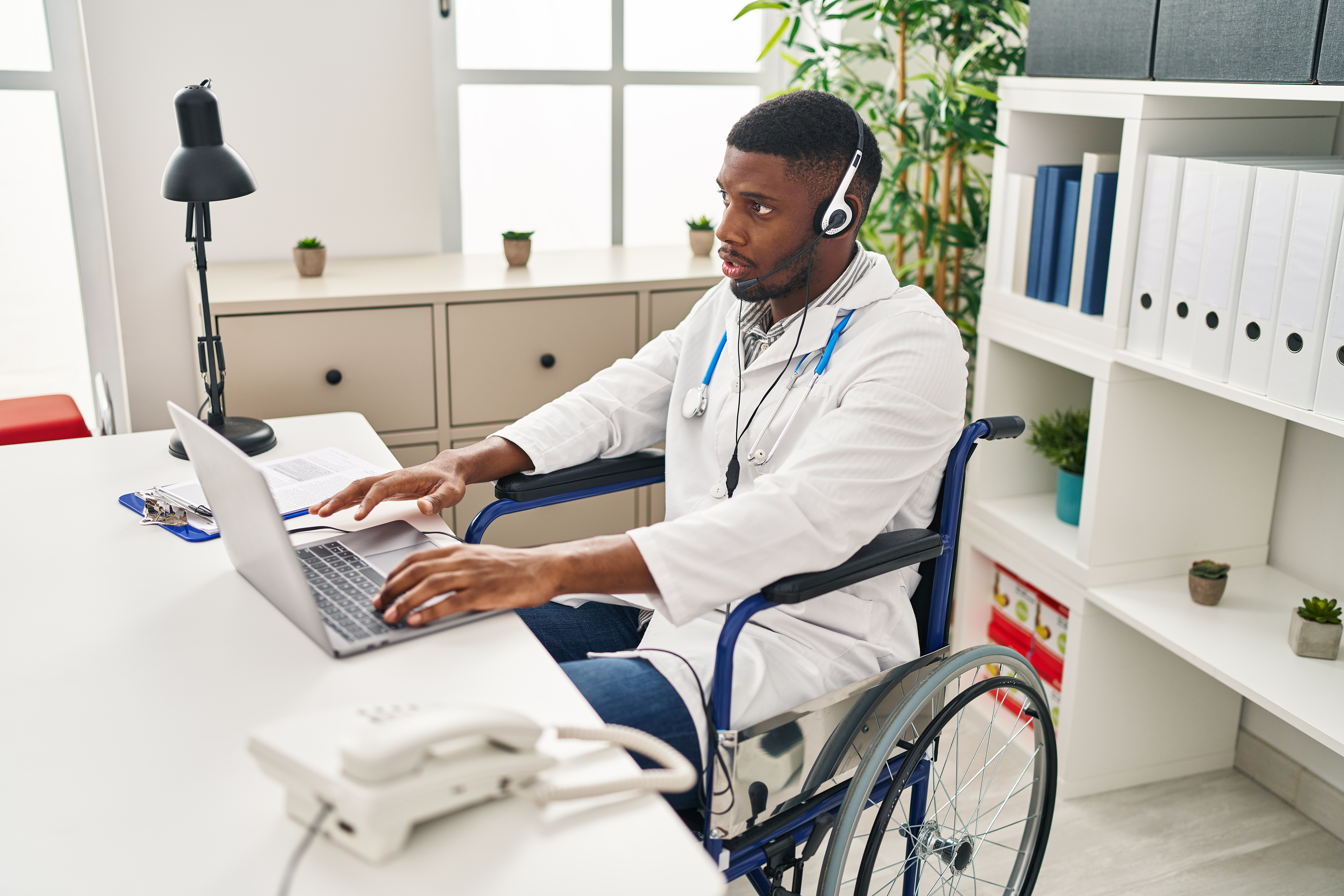 Created with images by Kamjana - "abstract black and silver are light gray with white the gradient is the surface with templates metal texture soft lines tech diagonal background black dark sleek clean modern." • Tierney - "Telehealth theme with person using a laptop computer" • Tierney - "Telehealth theme with person using a smartphone on a blue background" • Krakenimages.com - "African american doctor man working on online appointment sitting on wheelchair scared and amazed with open mouth for surprise, disbelief face" • sorapop - "Senior man dressed wear eyeglasses sitting on chair working on laptop in living room at home, Happy old man retired using computer, Elderly grandfather work from home" • Andrey Popov - "Remote glucose testing monitor" • Tierney - "Telehealth theme with person using a laptop computer" • dakotastudios - "US Highway Exit Sign for Missouir" • MRSUTIN - "Heartbeat symbol and stethoscope on blue background. Healthcare concept." • AntonioDiaz - "Sick patient coming to see the doctor" • Rawpixel.com - "Women Breast Cancer Support Charity Concept" • Tierney - "Telehealth theme with person using a laptop computer"