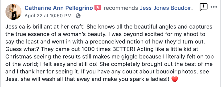 Normally, all of that is $300. BUT because I know you’ve been dying to book your own boudoir shoot and feel as amazing as the other women I’ve photographed I'm offering you this SUPER LIMITED DEAL!