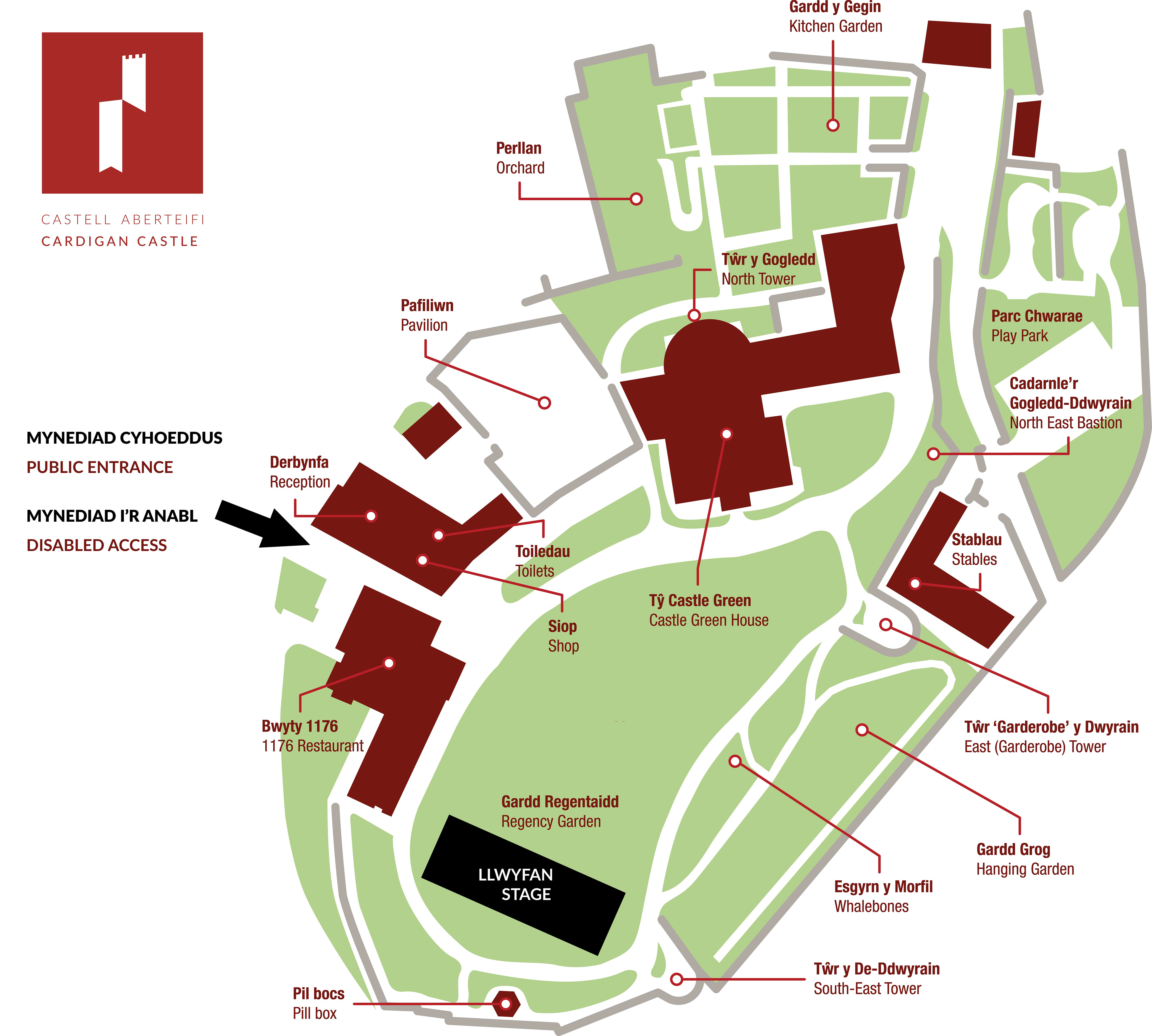 Please note that there is NO ON-SITE PARKING at Cardigan Castle, and we advise customers to use the public pay & display carparks (free after 6pm) situated around the town.