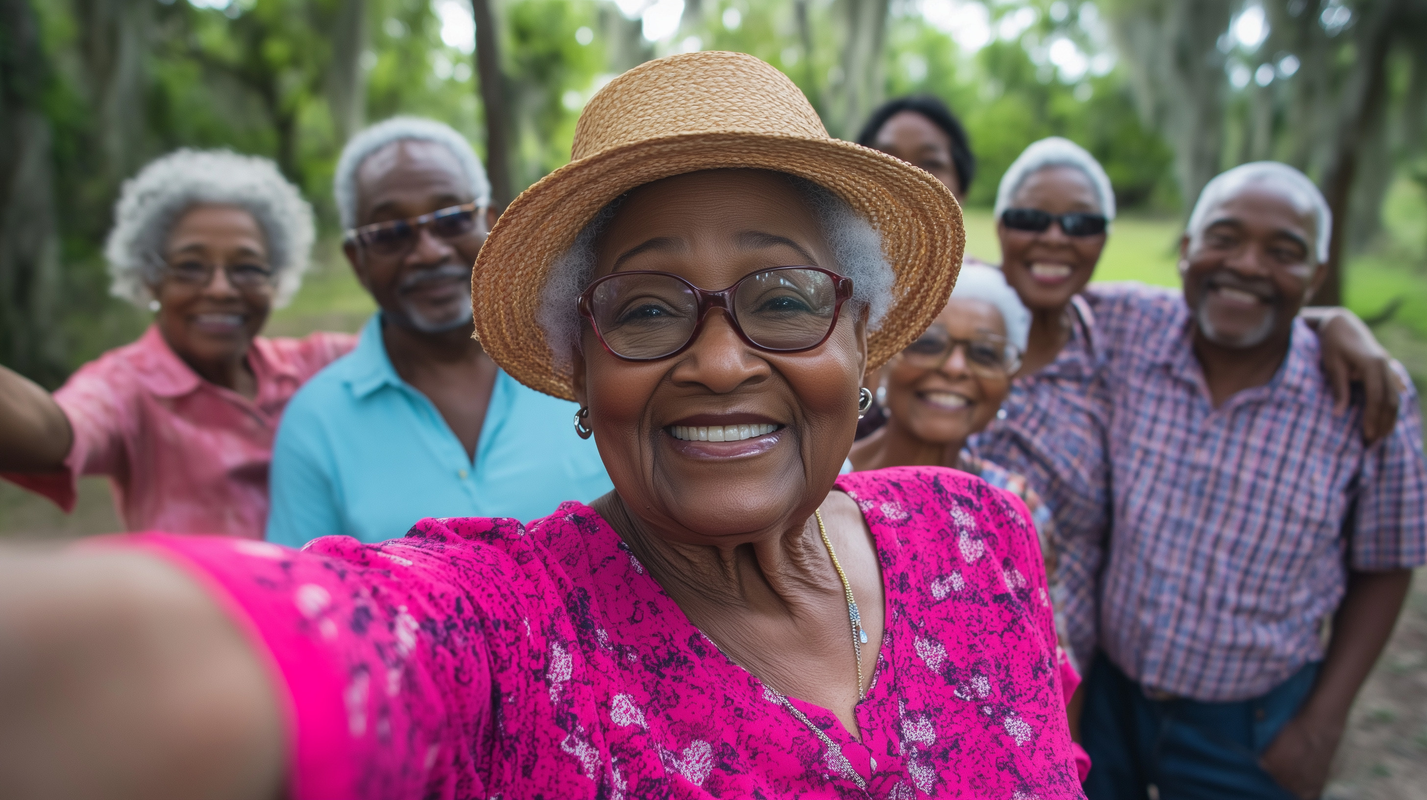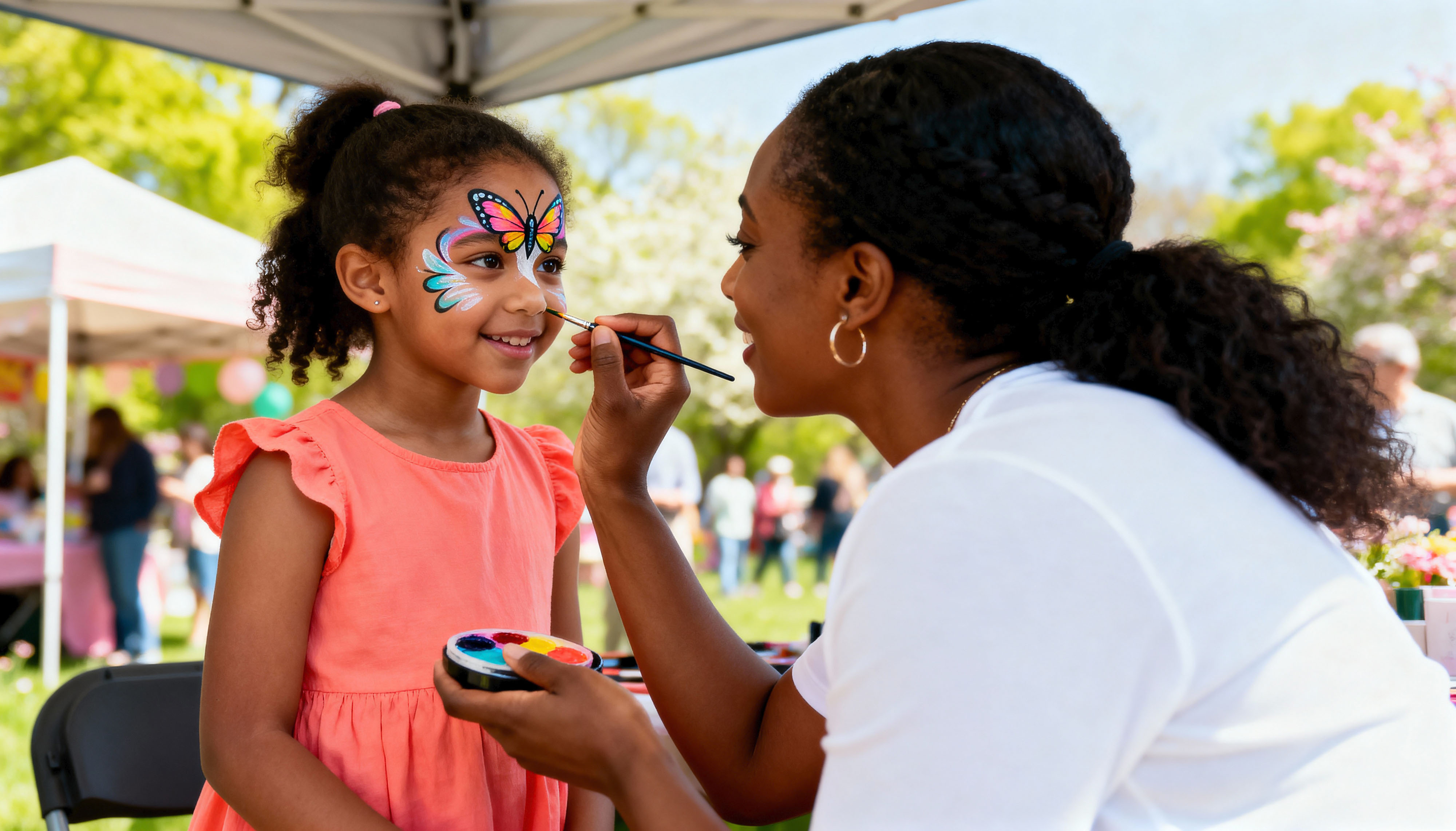 Created with images by Anna - "Happy African American girl getting a butterfly face painting from an artist at an outdoor festival.,Fun summer community event and childhood entertainment" • vlntn - "Bright Red Kickball on Grass Field" • Brocreative - "Smiling little girl playing on an inflatable slide bounce house outdoors" • keiron - "African American father and two young daughters play chess match outdoors, family bonding intellectual learning and strategy concept" • Jennifer Clason - "An elderly black or African American woman taking a selfie with a group of her senior citizen friends behind her, all smiling happily outdoors" • MdNazim - "Red blue beanbags flying over cornhole boards tossing" • Kazi - "Close up of a person s hands holding a tablet and marking off completed tasks on a digital checklist with a stylus"